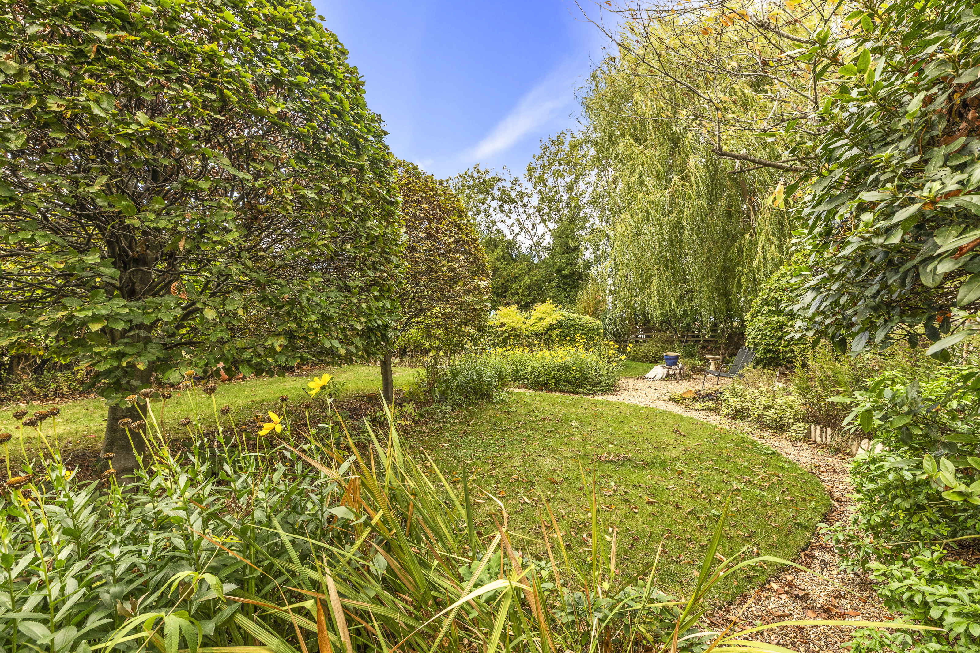 Running across the rear of the home is a paved patio ideal for relaxing or outside dining. There is a brick built garden store and a 'gardeners' WC, for convenience there is gated side access to the front and driveway. From the patio the garden has been beautifully tended by the current owners and has a vast variety of flower beds, shrubs and trees. A shingle pathway runs the length of the garden. The front has a loose stone drive which provides parking for at least 3 cars and enables those with EV space to charge your car.
