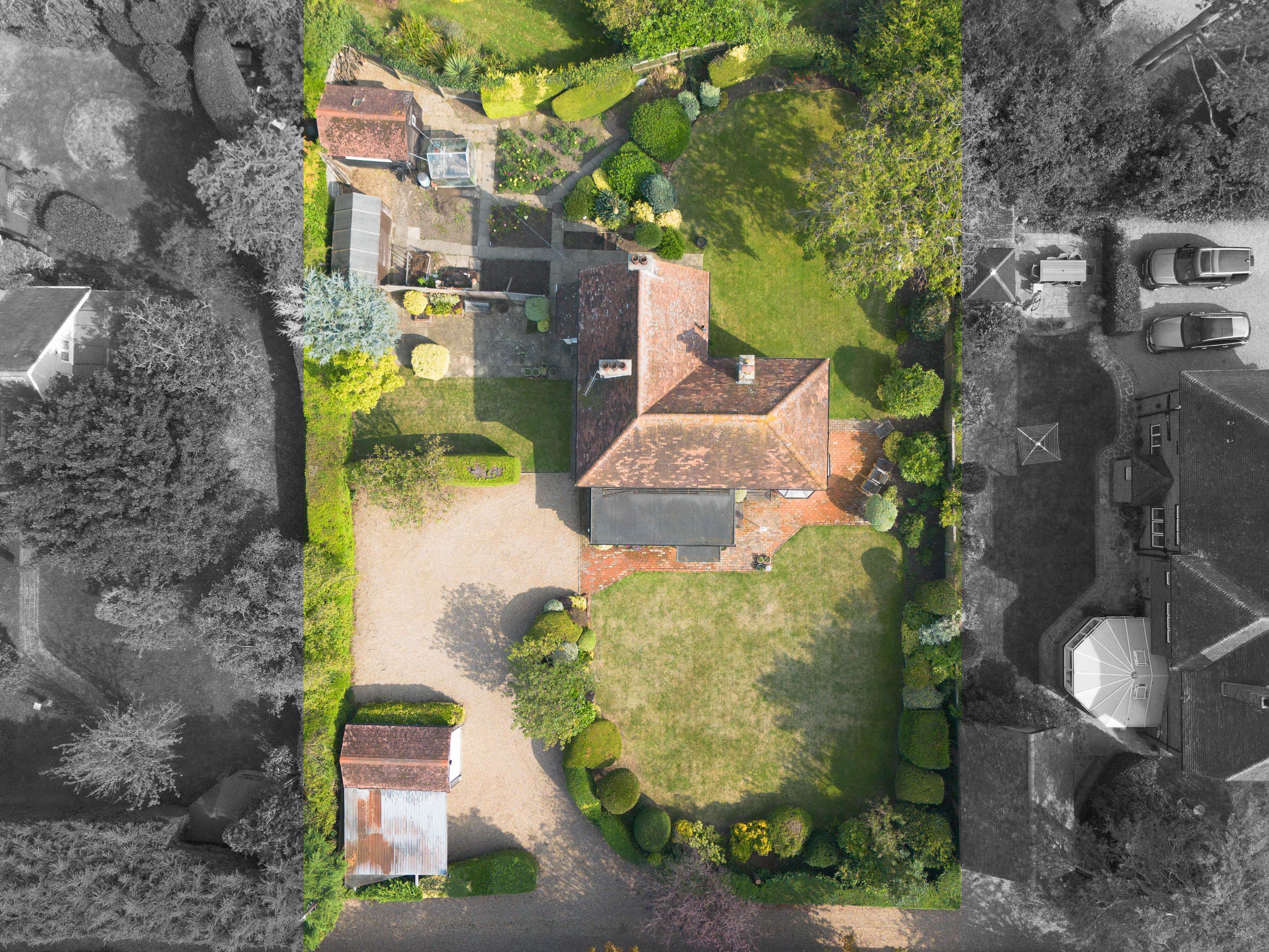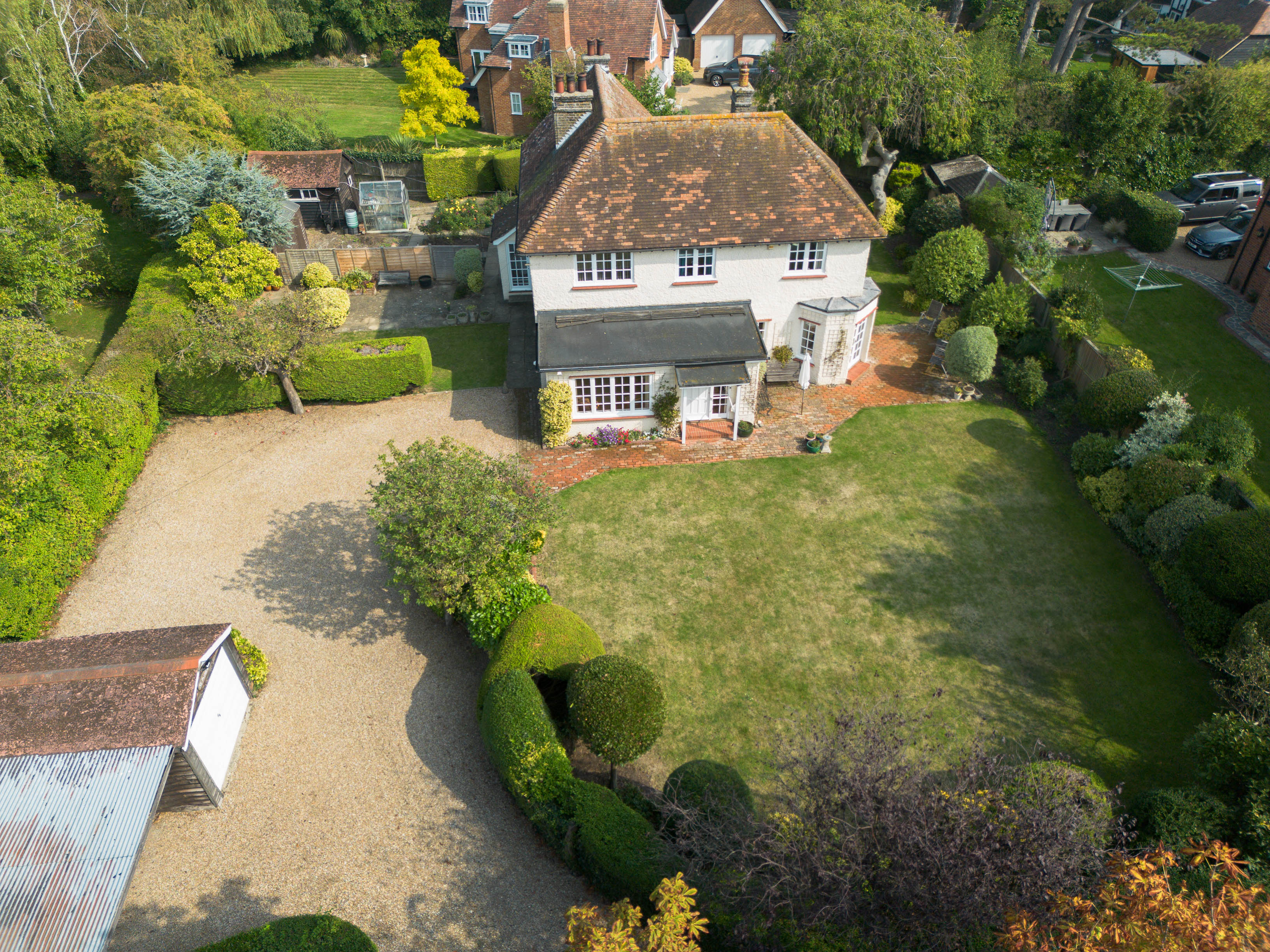 Set on a generous plot, the property is surrounded by beautifully maintained, mature gardens. These provide a peaceful, private sanctuary with a lush, green backdrop, perfect for relaxation or outdoor gatherings with family and friends. There is ample space to extend or enhance the property if desired, allowing you to unlock the full potential of both the home and its grounds. Additionally, the property benefits from a detached single garage and extensive off-road parking, a rare commodity in this prime location.