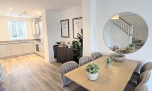 Reception Hall storage cupboard. Ground floor Cloakroom/WC. Stunning open plan front to back Kitchen /Sitting / Dining Room fitted with a range of units and integral appliances plus sliding doors to garden. Generous First Floor landing with loft hatch. Principle Bedroom + Juliet balcony. En-Suite Shower Room modern white suite. 2 Further Bedrooms and separate Family Bathroom modern white suite.