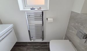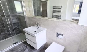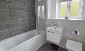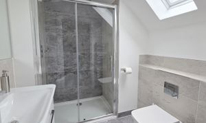 First Floor - Landing with airing cupboard and loft hatch. 4 Bedrooms (3 with built-in wardrobes), 2 En-Suites and a separate Family Bathroom modern white suite, enclosed bath, shower attachment, screen, low level WC and wash basin.