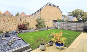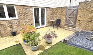 Outside - Private Driveway for 2 vehicles 20’ x 9’10 Garage side gate into the enclosed 28' deep x 40' wide Rear Garden laid to enlarged patio, shaped lawn, raised flower beds, timber fencing and brick wall boundaries plus external power.