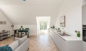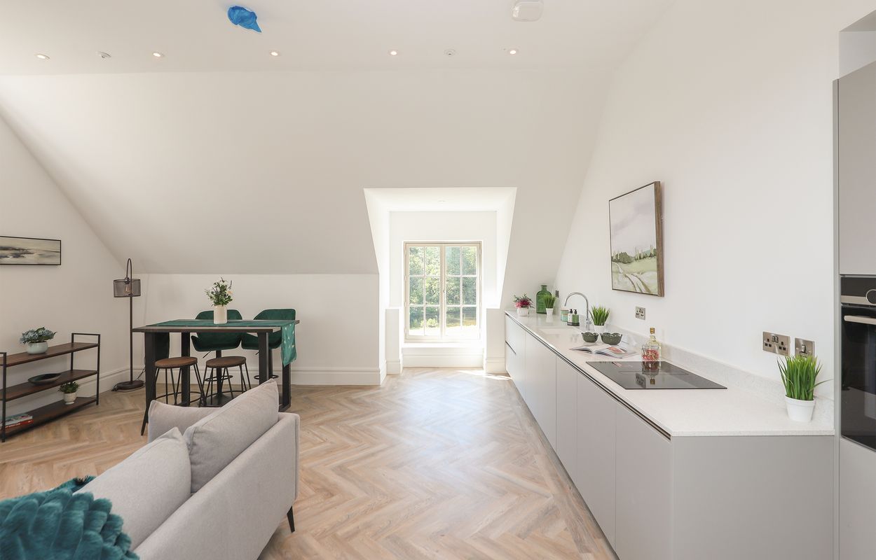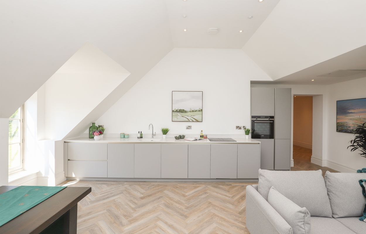 Apartment 17 Firbeck Hall is a spectacular two-bedroom top-floor south facing penthouse apartment comprising an exceptional open-plan living space with stylish fitted kitchen and juliette balcony, two larger than average bedrooms, a luxurious bathroom and en-suite shower room fitted with Villeroy and Boch sanitary ware. The layout of this apartment has been designed to suit the modern lifestyle with living and sleeping accommodation separated by a sleek hallway, creating the perfect space for a home office. The unique design of the open-plan kitchen living space benefits from a large south-facing window allowing plenty of natural light.
