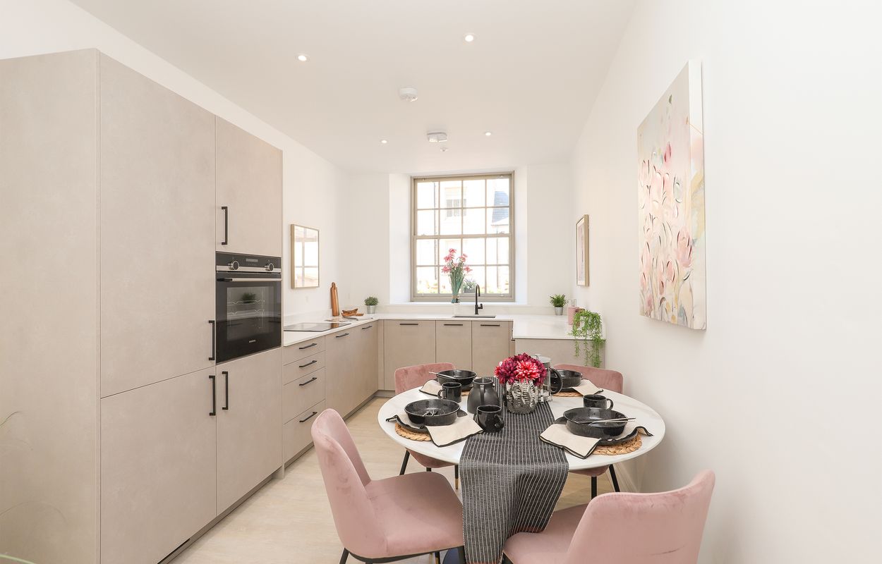 Apartment 7 Firbeck Hall is a beautifully designed two-bedroom apartment that is situated on the ground floor. The apartment comprises a contemporary cashmere German Beckermann kitchen with a range of Siemens integrated appliances, spacious separate living room with dual aspect windows, two bedrooms - one double, one single and a luxurious bathroom fitted with Villeroy and Boch sanitary ware. Apartment 7 has the added benefit of a private outdoor west-facing terrace that is accessed externally.