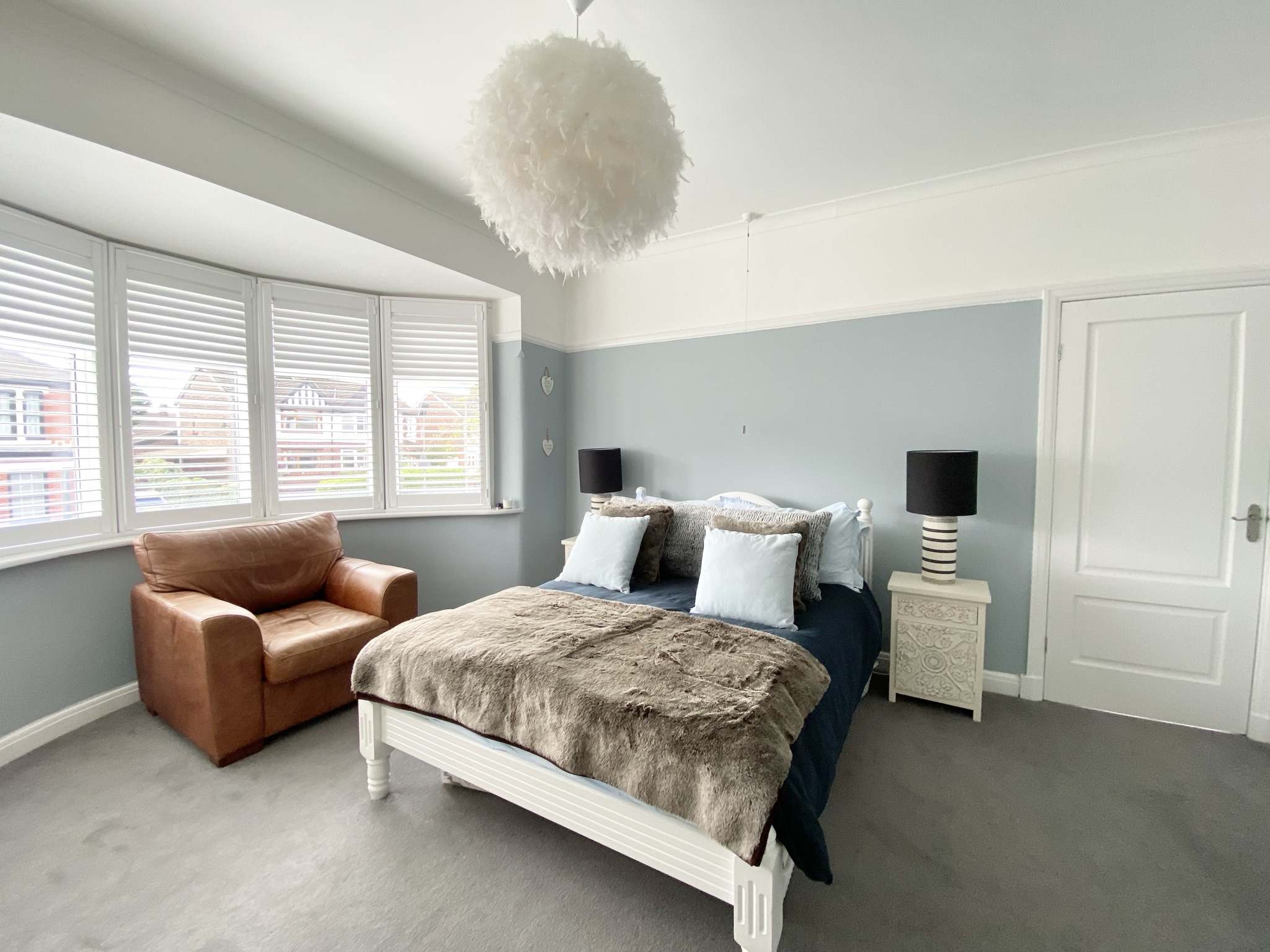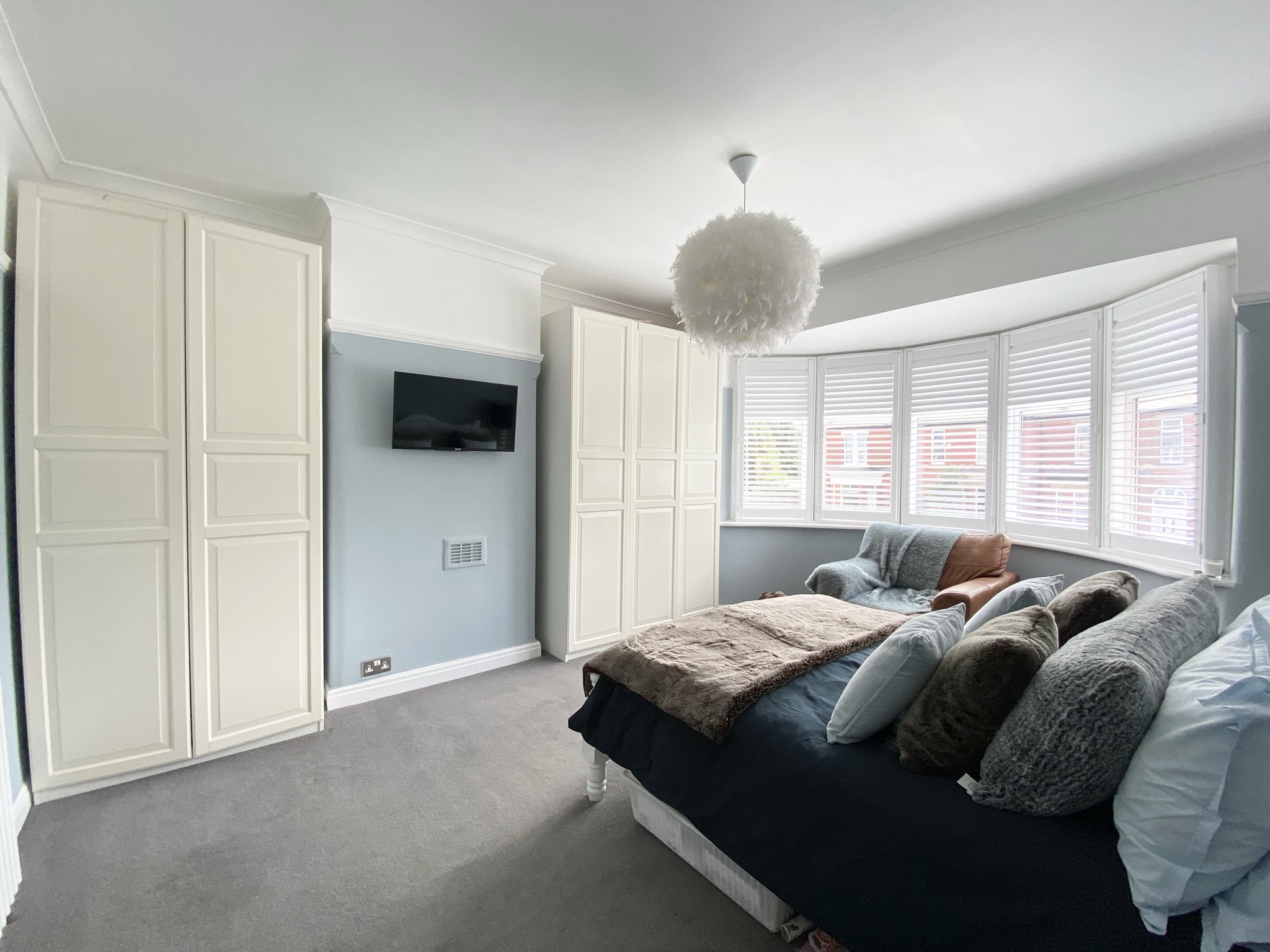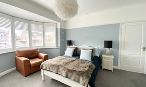 Bow bay window to the front elevation complete with fitted French shutters. T.V point. Ceiling coving.