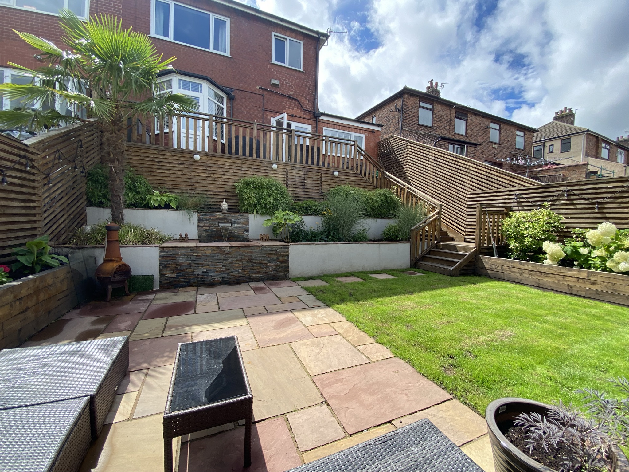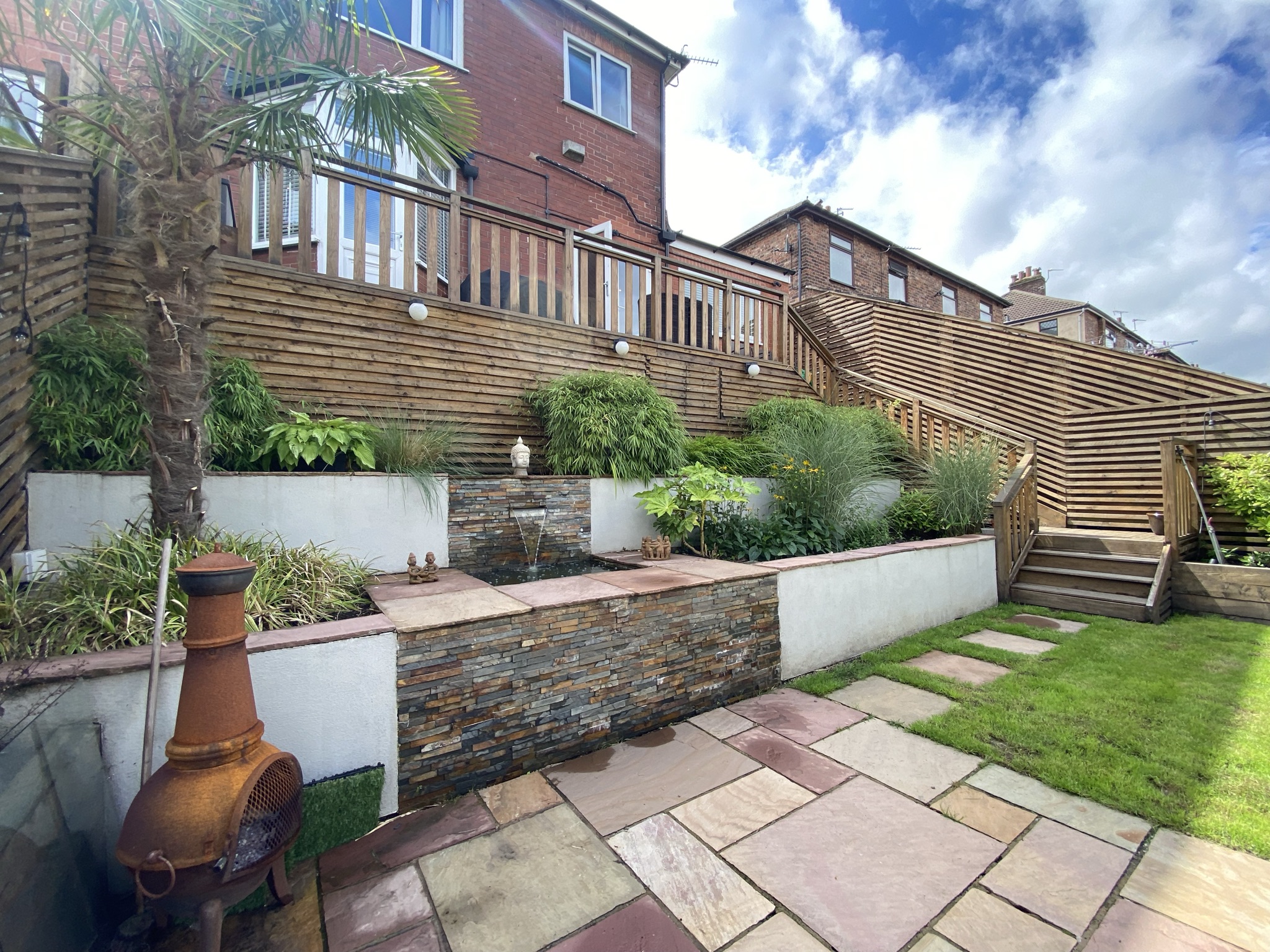 The garden is split level with a decked area direct from the house with a steps leading down to the beautifully landscaped rear garden complete with a neat lawn and paved patio area ideal for summer entertaining and mature well stocked panted borders and water feature.