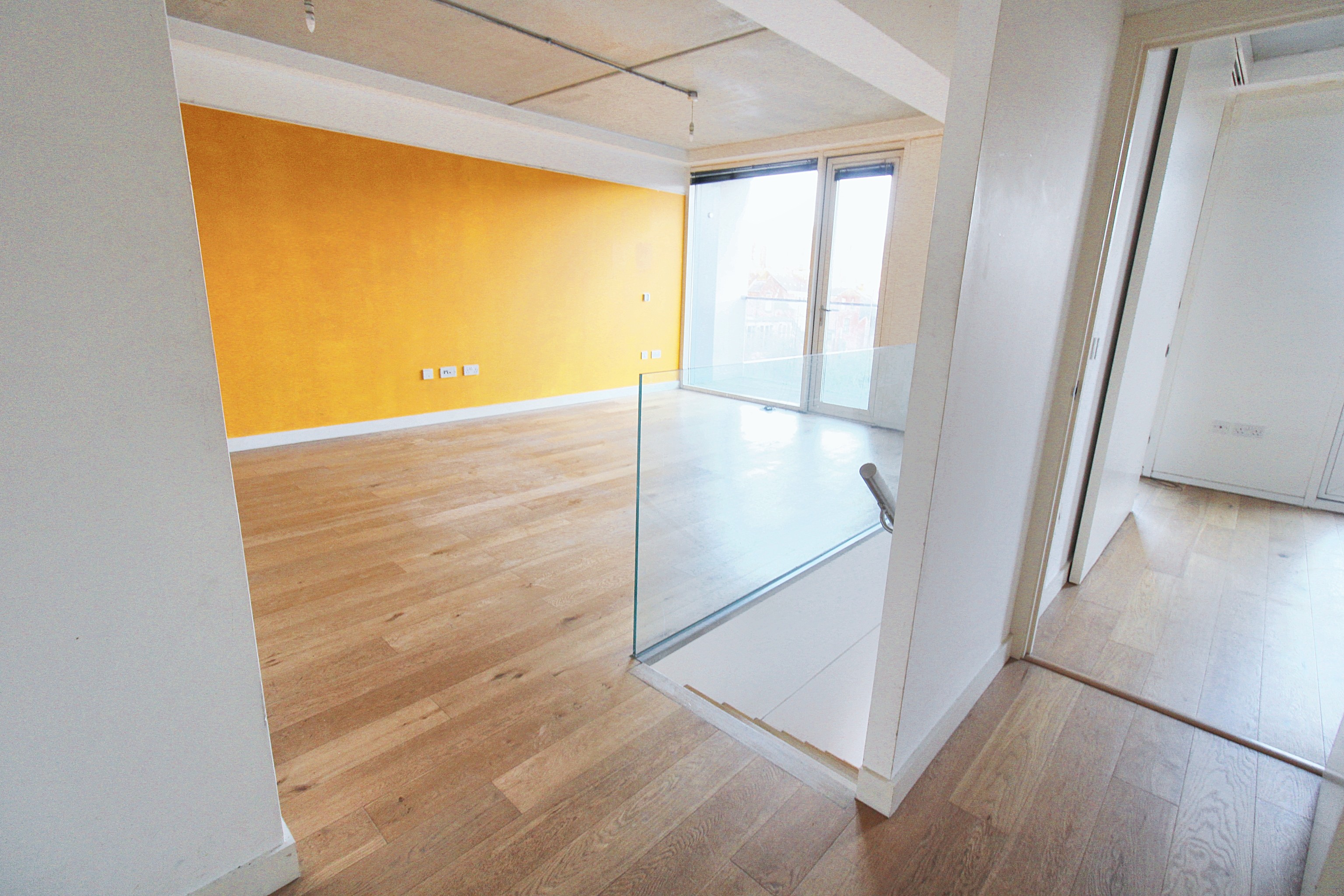 An open living and kitchen/dining area with two double glazed windows and door leading to balcony, a contemporary fitted kitchen comprising of a single drainer sink unit with mixer taps plus a range of fitted base units incorporating cupboards and drawers with work surfaces over and matching wall mounted cupboards, built in fridge/freezer, four ring electric hob and built in oven and integrated dishwasher, oak flooring, downlights, under floor heating and stairs down to the master bedroom