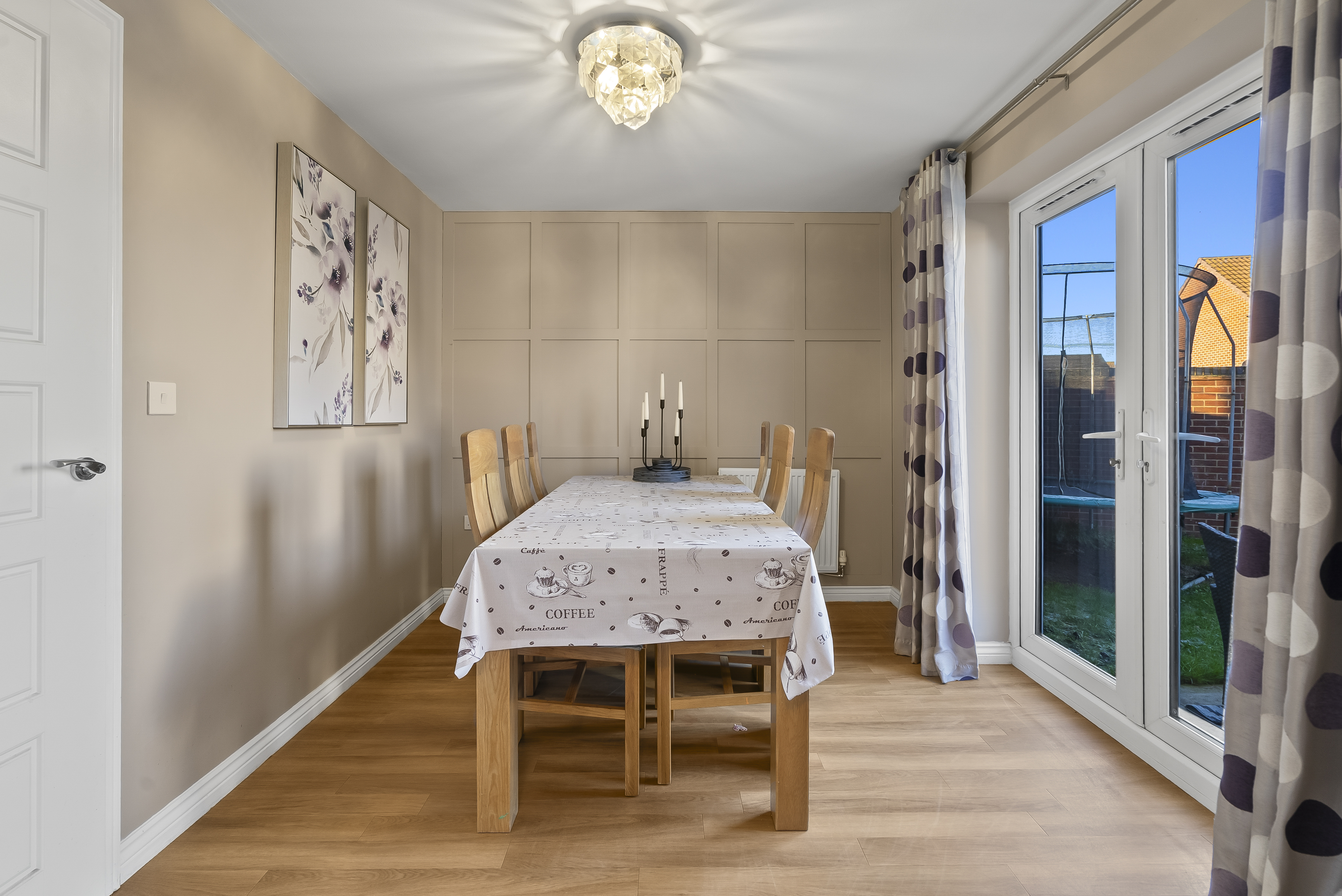 - Dining room with patio doors onto the rear patio and gardens