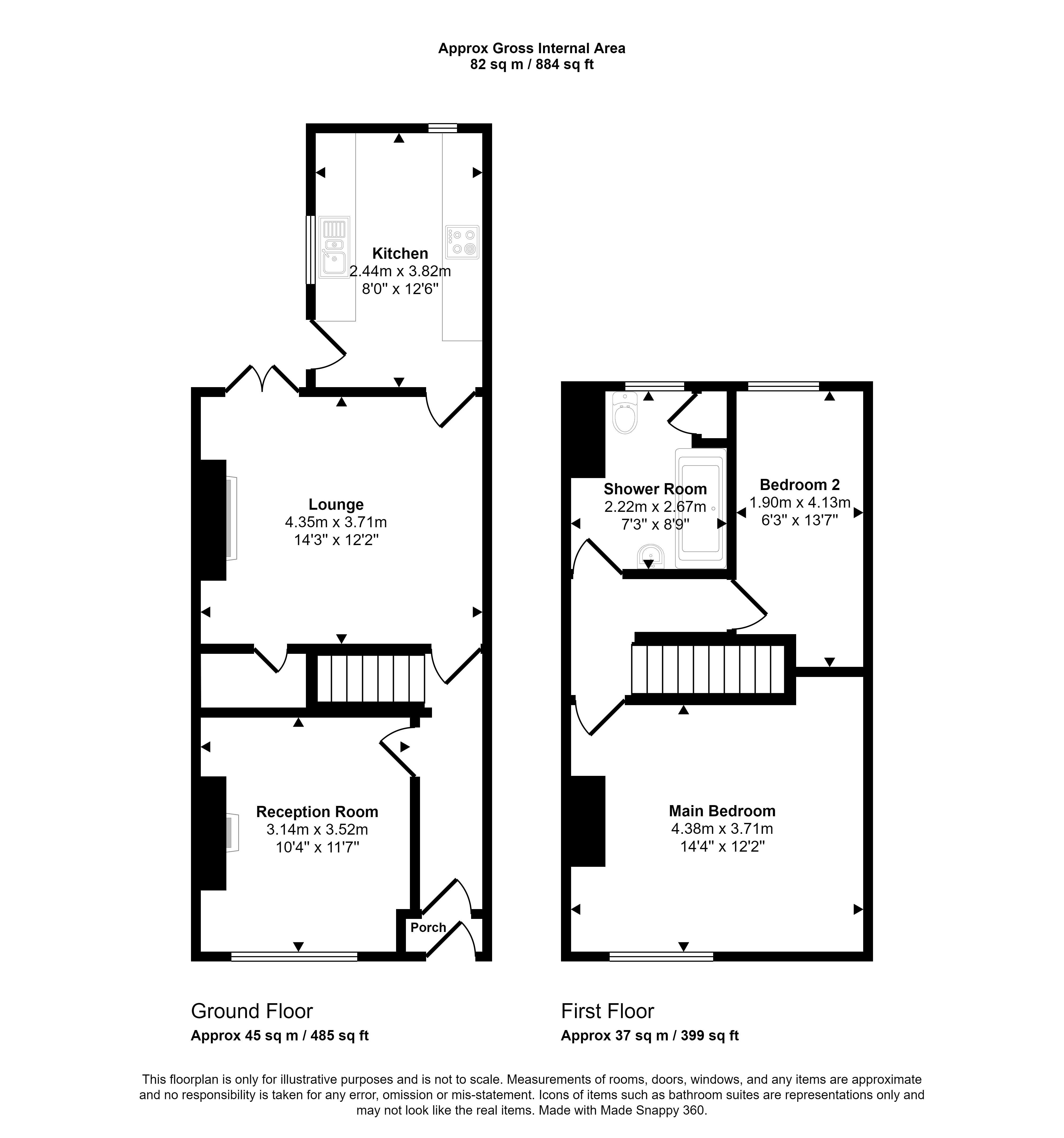 Upstairs, the home offers two well-proportioned bedrooms and a contemporary shower room.