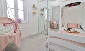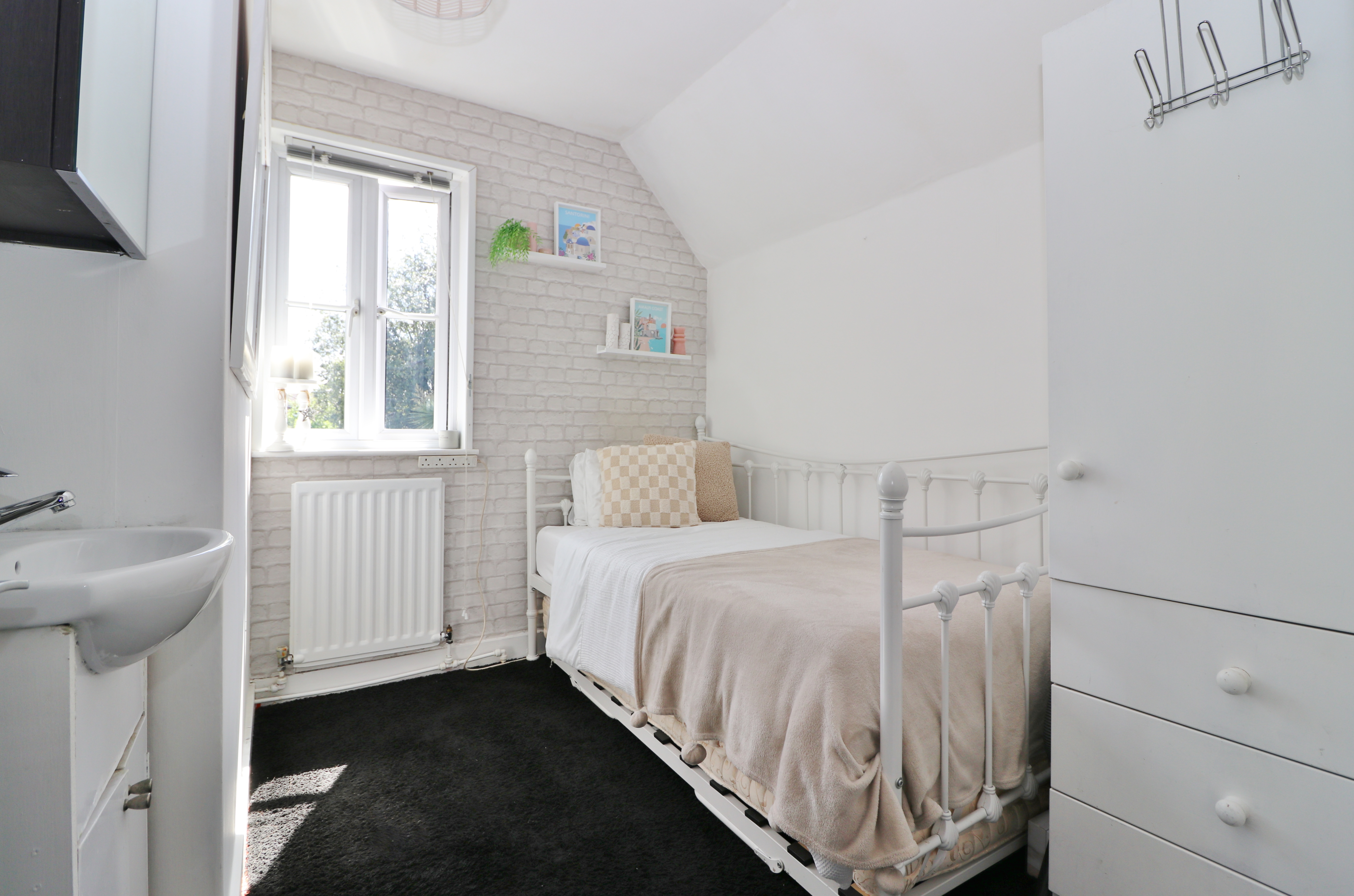 The fourth bedroom faces the front of the property and has a fitted wardrobe, whilst bedroom five has a window to the rear.