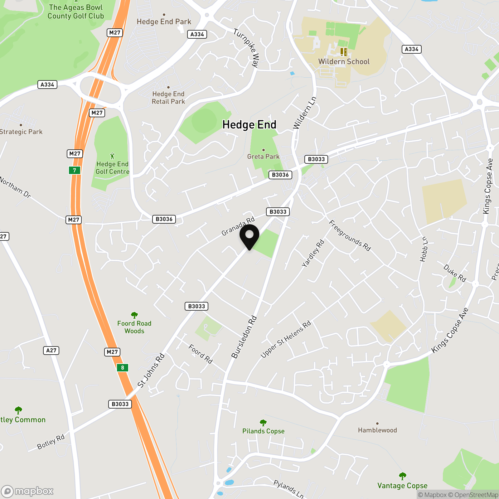 Proceed out of Hedge End’s village centre along St John’s Road, where the property can be found a short way along on the left hand side.