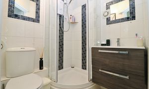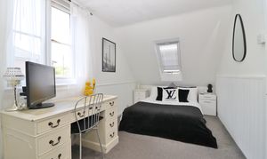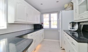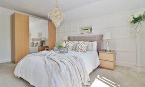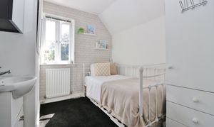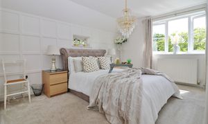 The second bedroom has a window to the side, overlooking the local park, fitted wardrobes along one wall and a modern en-suite shower room. The third bedroom measures in excess of 20ft, has a built-in cupboard and enjoys a triple aspect.