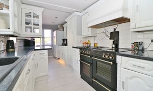 The 20ft kitchen has windows to the front and side and has been fitted with a range of wall and base units with a Range style cooker with extractor over and space for an American style fridge/freezer. The utility has modern fitted units and ample space for further appliances, as well as a window and door to the rear and access to the modern shower room.