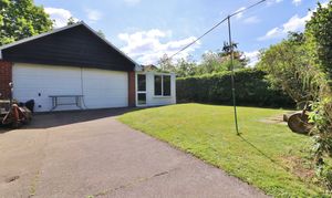 To the front there is an ‘in-and-out’ driveway which extends along the side of the property, through a set of double gates, and leads down to the end of the garden where there is a detached double garage with an adjoining workshop. A section of the garage has been partitioned to create a useful office space.