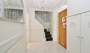 This impressive, five bedroom, detached family home comes with a good size, attractive, rear garden and an in-and-out driveway which extends along the side of the property, leading down to a detached double garage with an adjoining workshop and office.