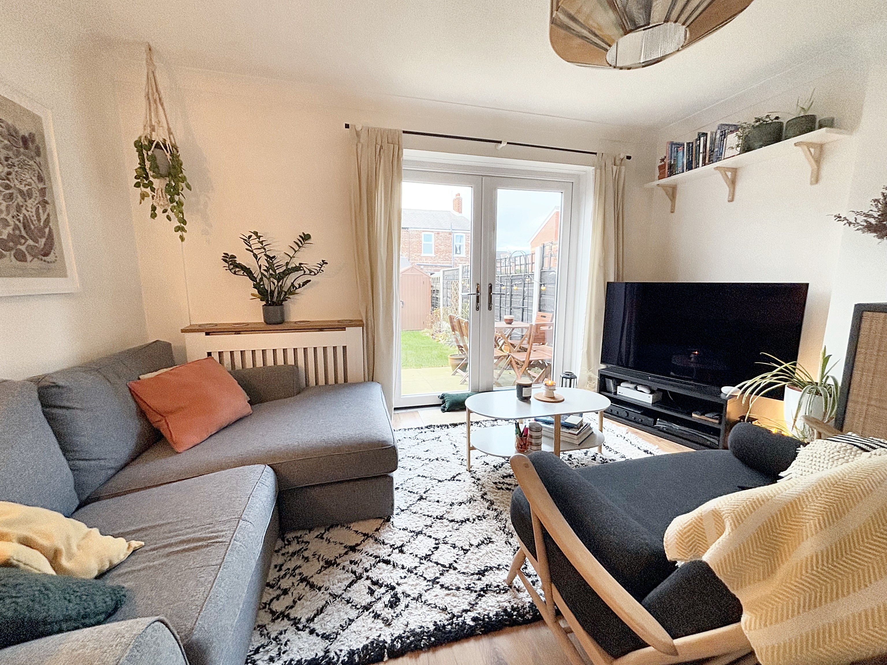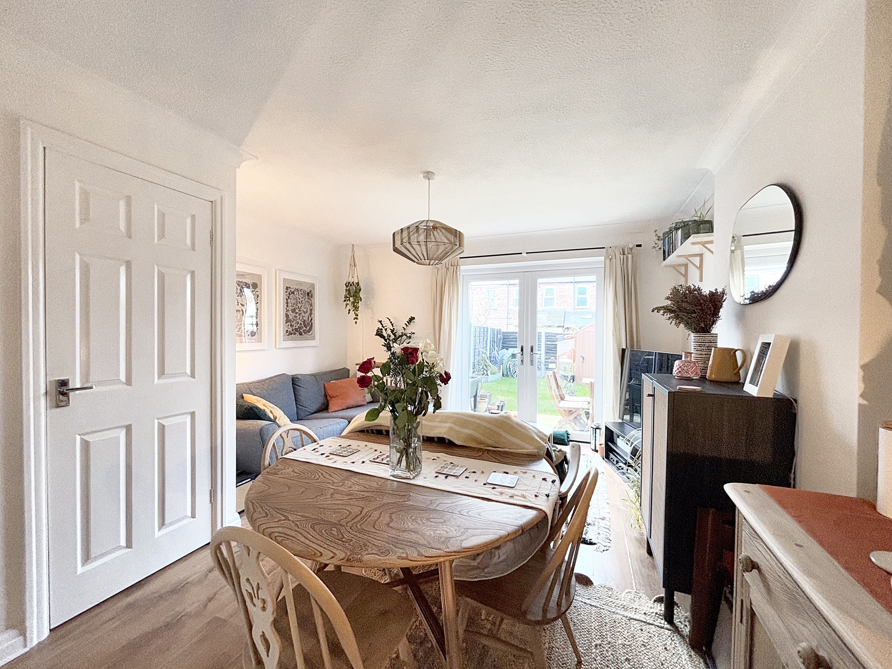 Under stairs storage cupboard. French doors to the rear elevation provides access to the rear garden. T.V point. Laminated wood flooring.