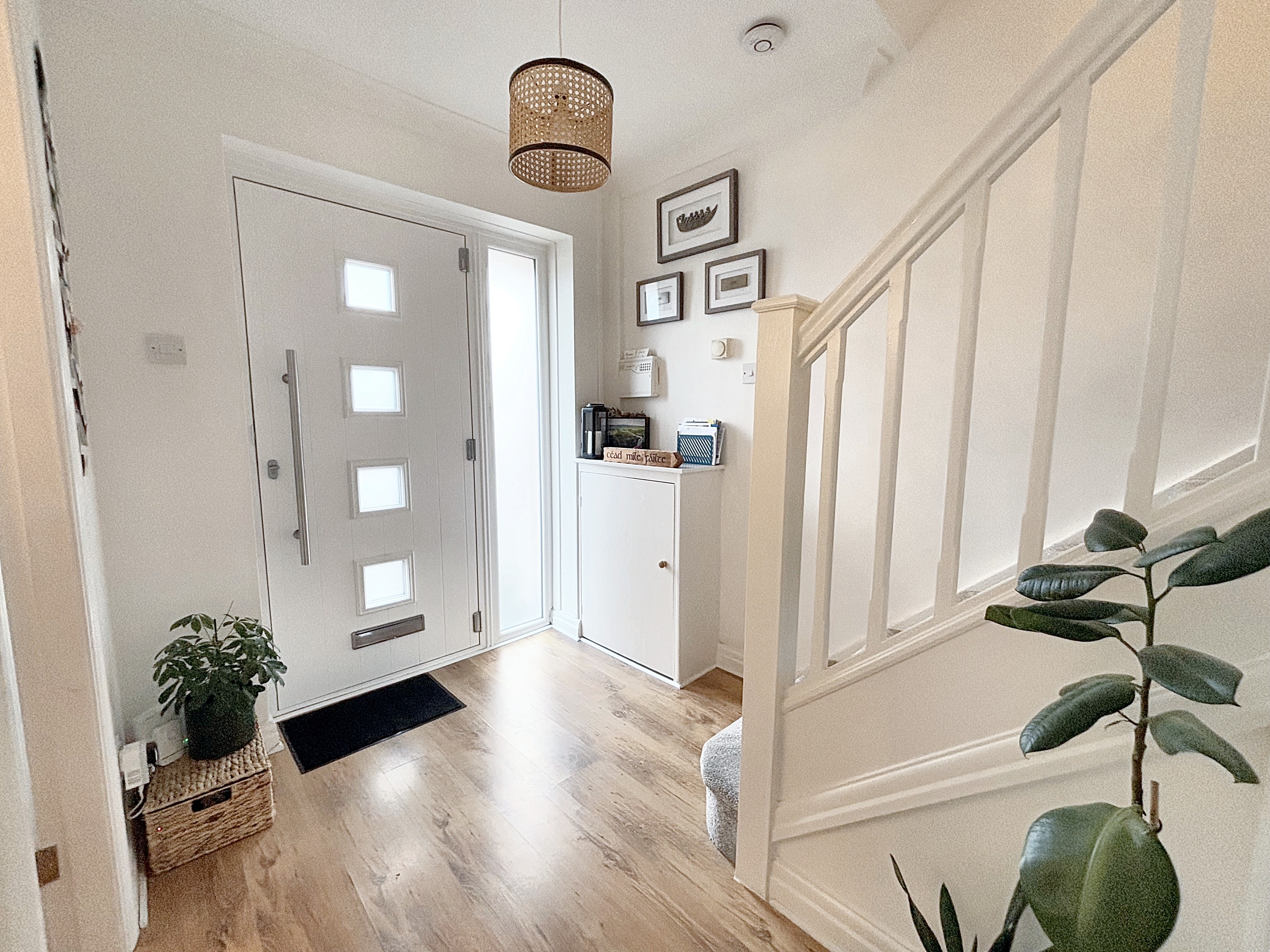 External door and window to the front elevation. Laminated wood flooring. spindle staircase leads to the first floor landing. Internal doors lead through to:
