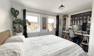 Two windows to the front elevation. Over stairs store.