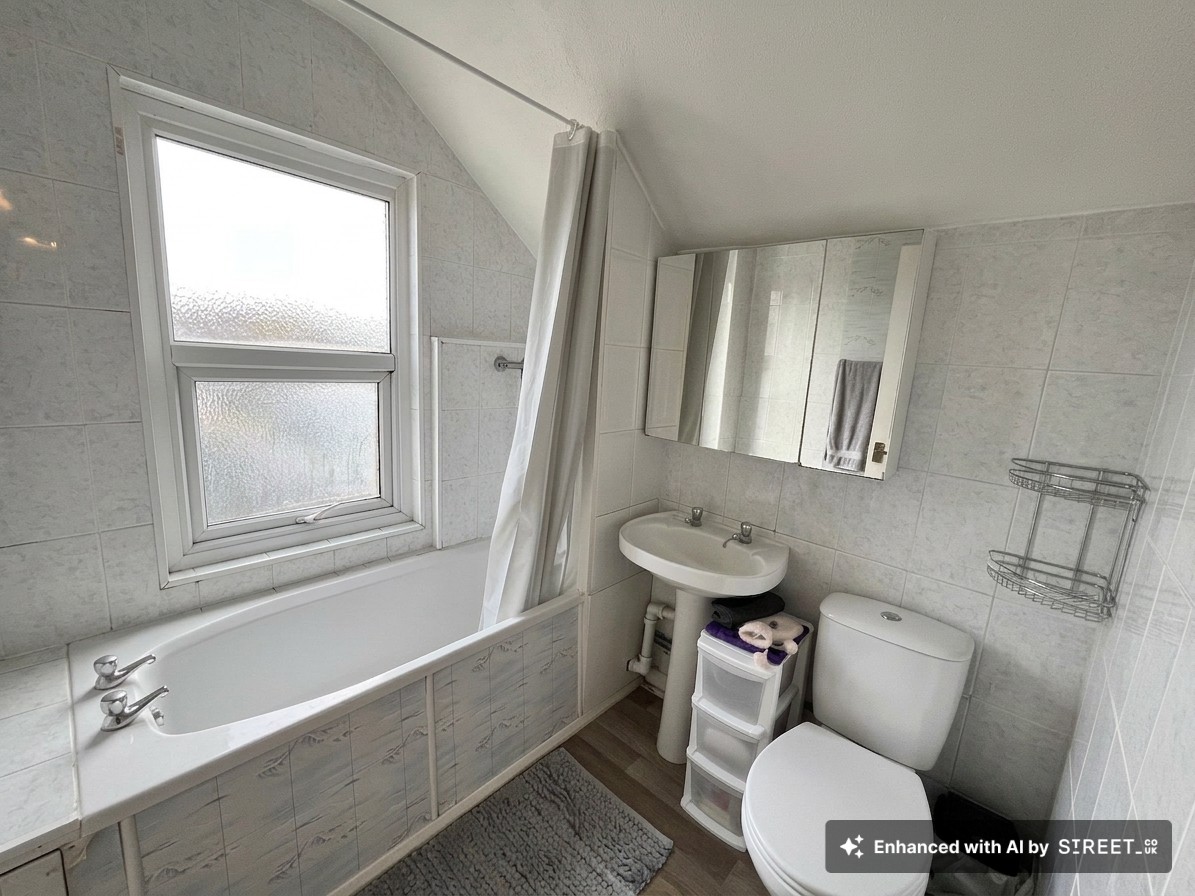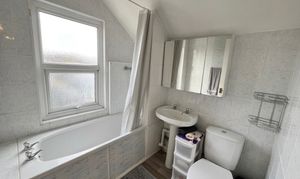 Double glazed window to rear aspect. Suite comprising bath with wall mounted shower over, wash hand basin and low level wc.