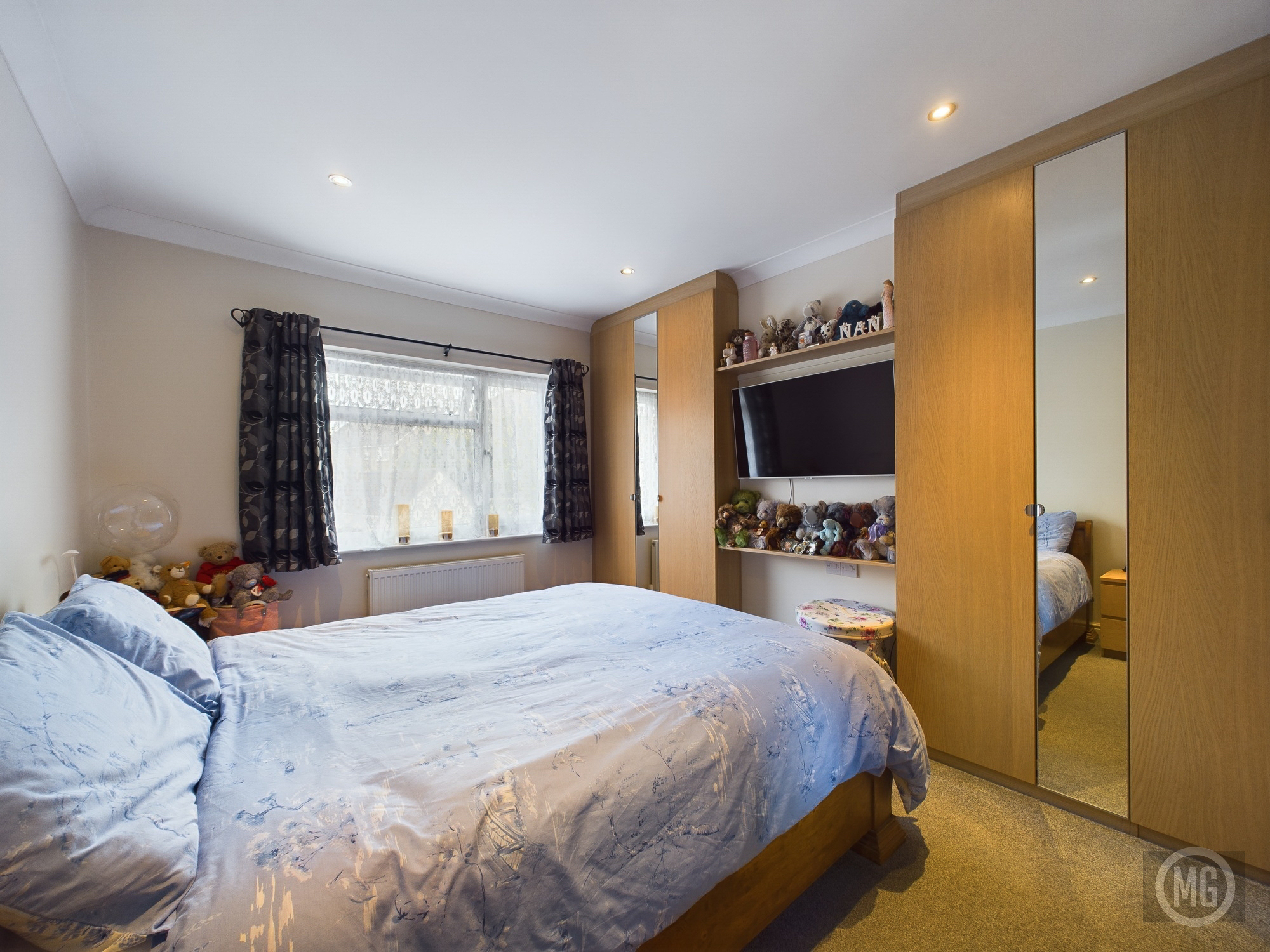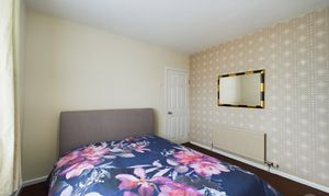 Carpet flooring, radiator, window with front aspect, built in wardrobes with soft close doors and automatic lighting