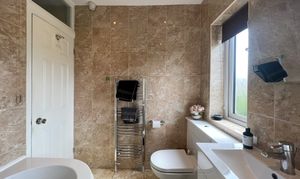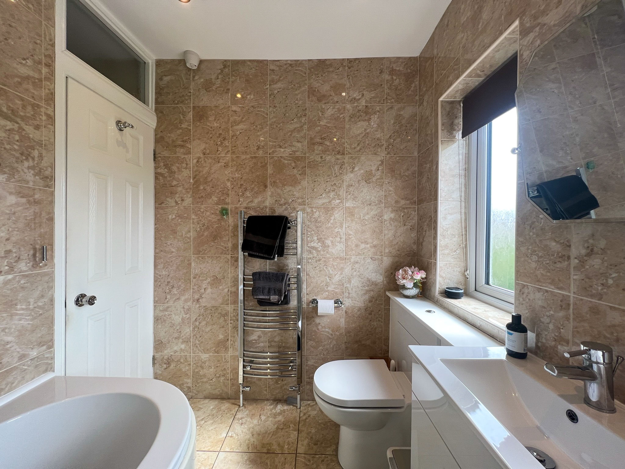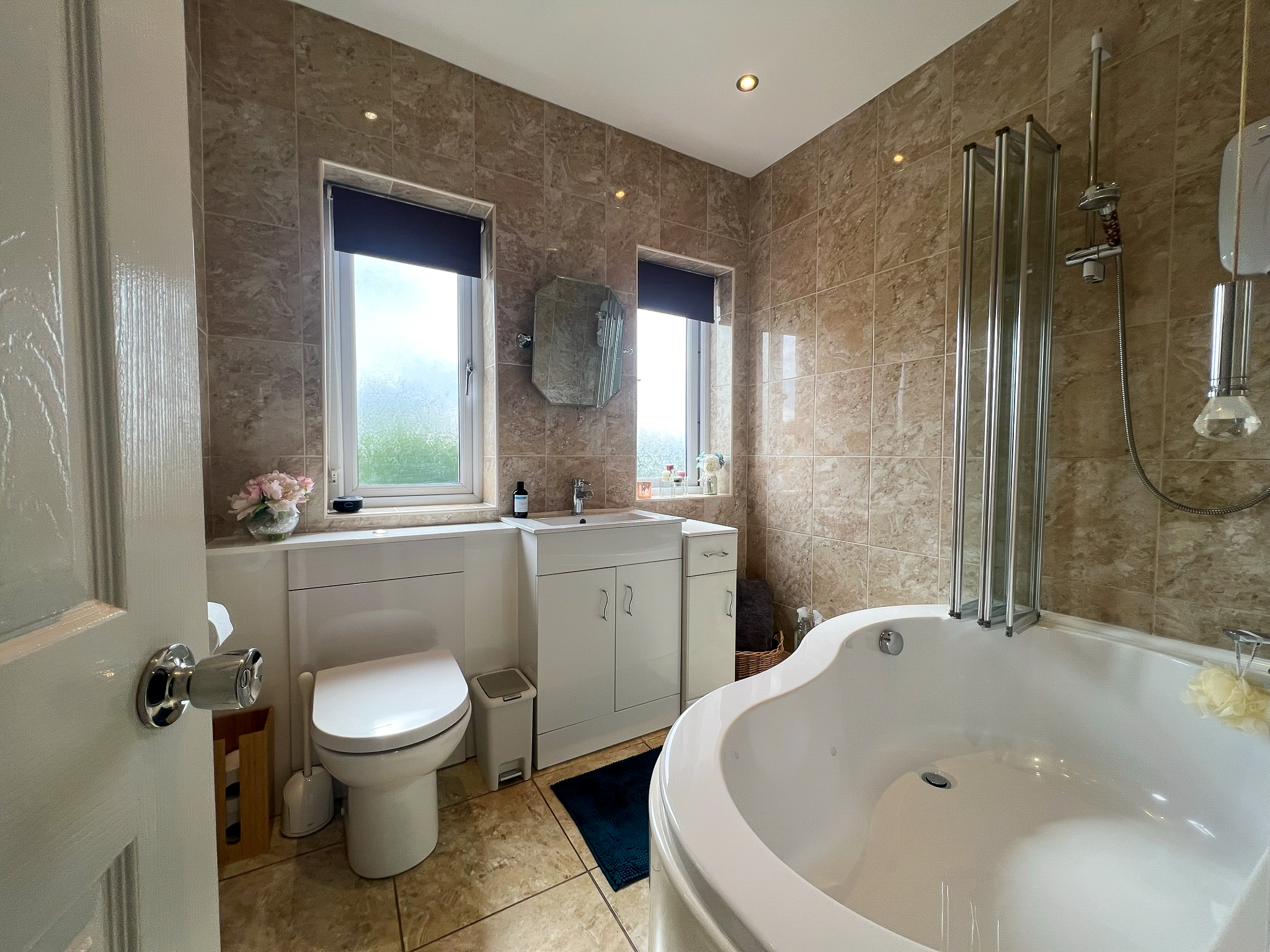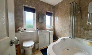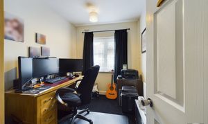 Upstairs, you’ll find three bedrooms, two of which are doubles. The main bedroom benefits from fitted 'soft close' wardrobes, providing ample storage space. The third bedroom, currently used as an office, can easily accommodate a single bed and wardrobe, making it a versatile space to suit your needs.