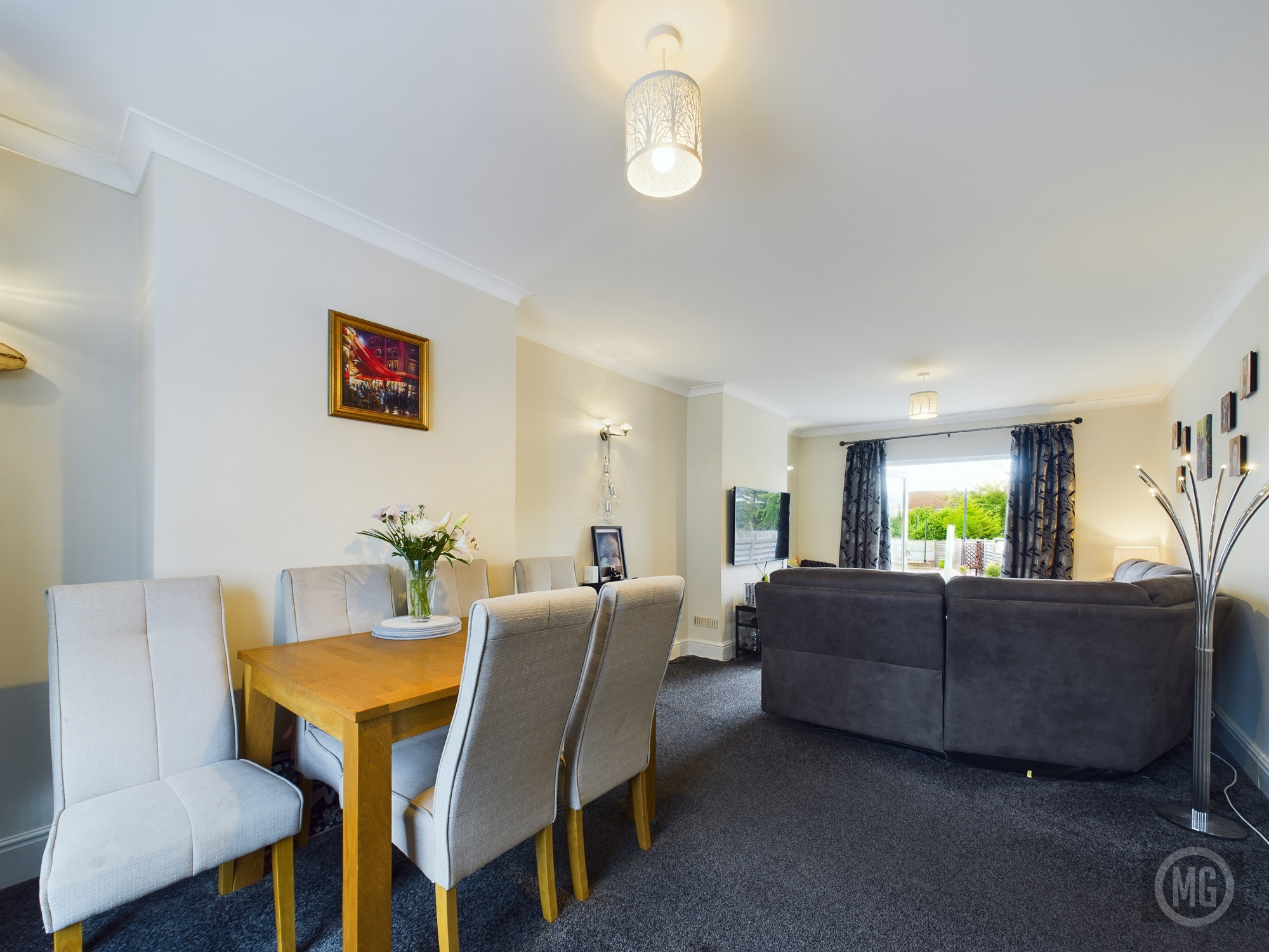 The large living room/diner is a versatile area, boasting a bay window that fills the room with light, making it an inviting space for social gatherings. Whether you’re curling up on the sofa for a movie night or getting competitive over a board game, this room is designed for making memories. The dining area is perfect for family meals and can easily accommodate larger celebrations with an extendable table. In the warmer months, French doors open directly onto the garden, seamlessly blending indoor and outdoor living.