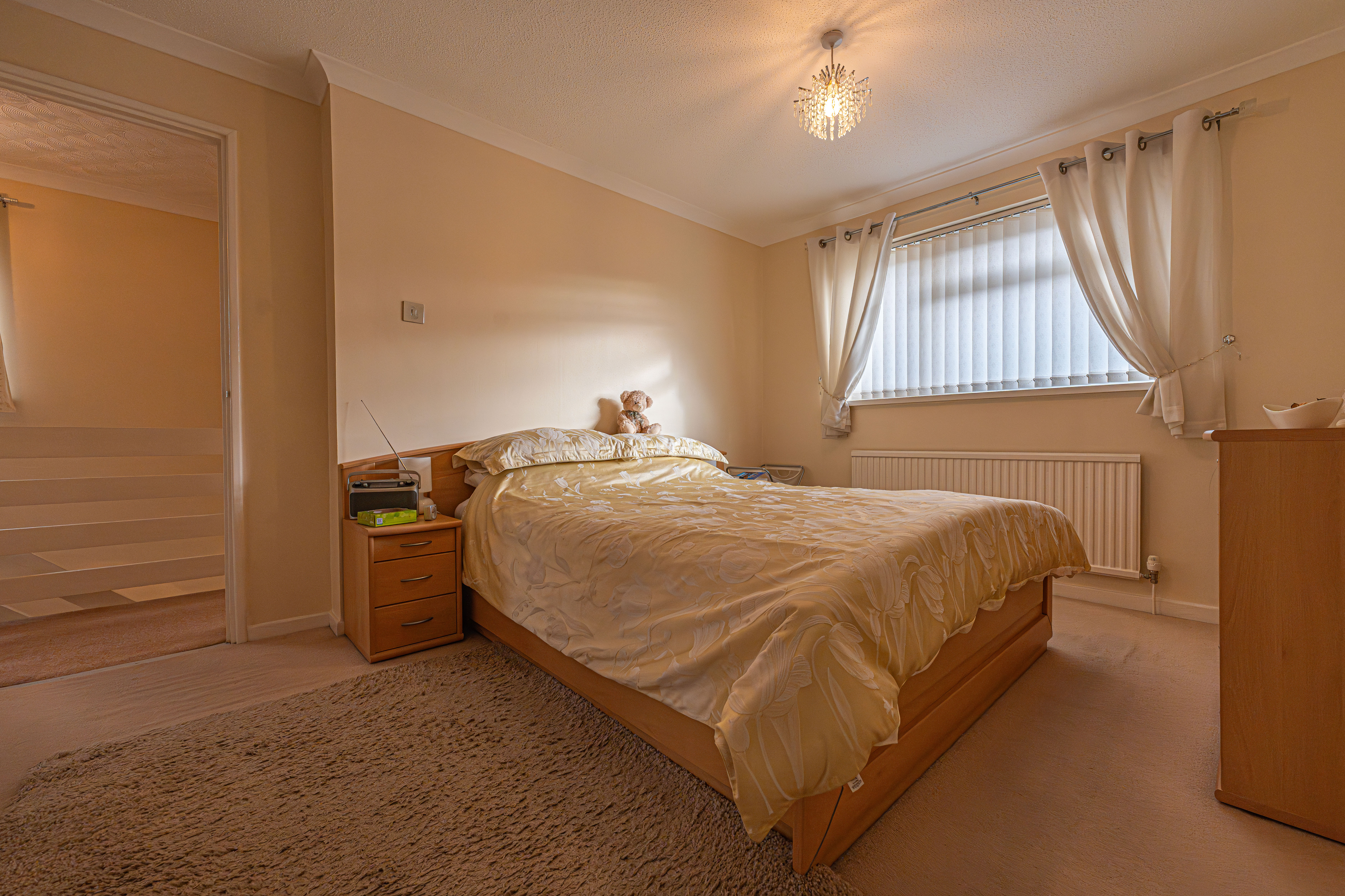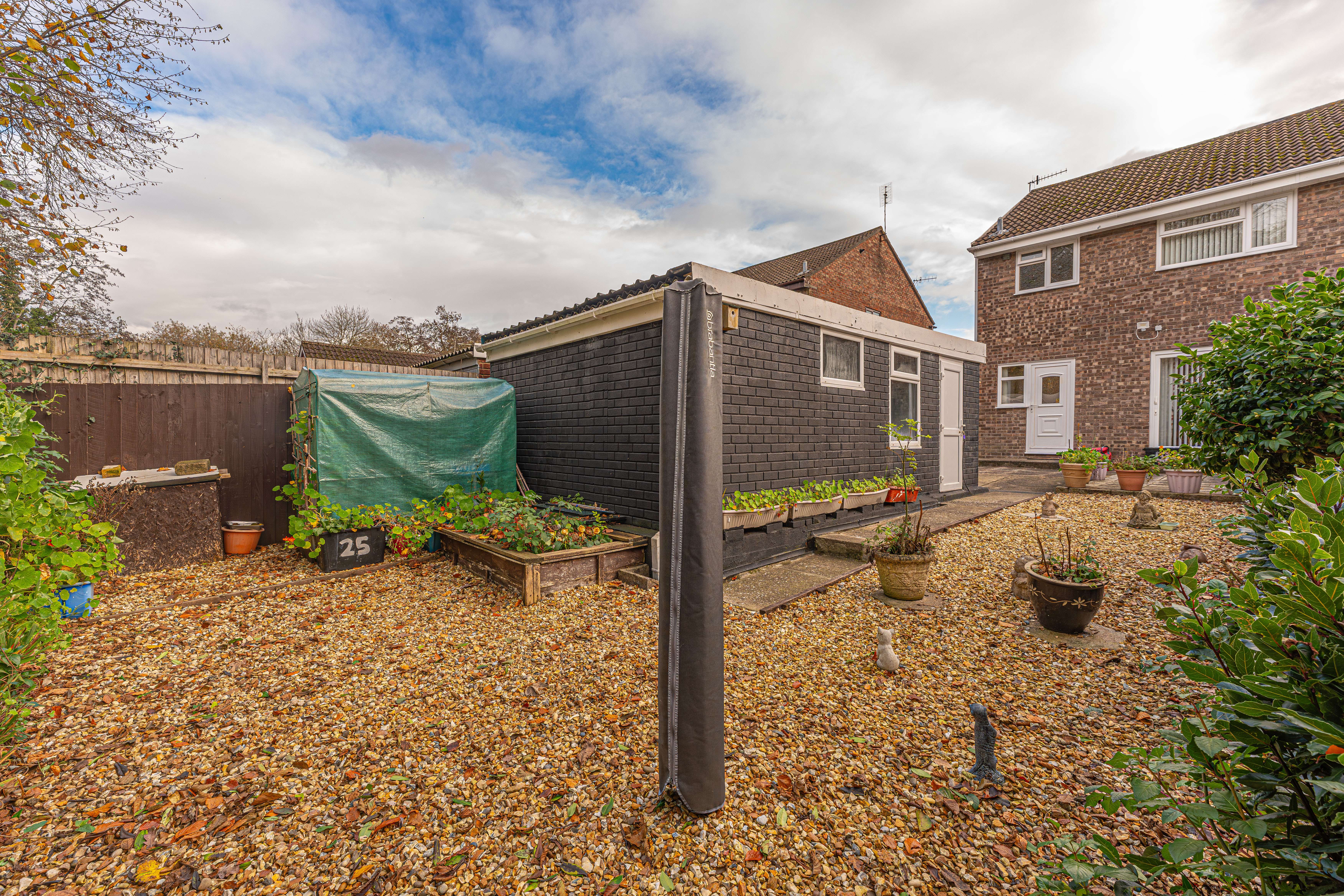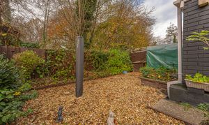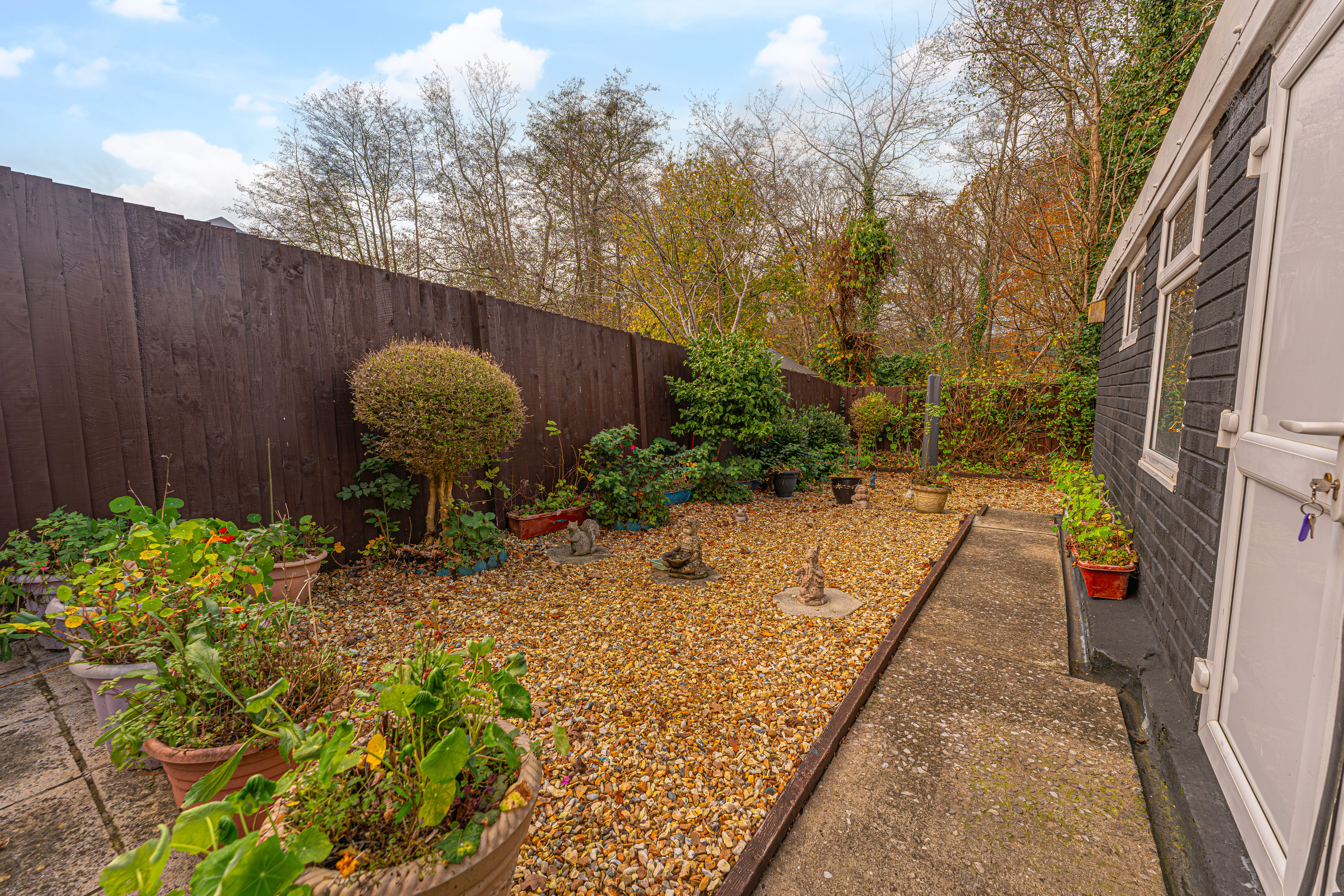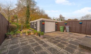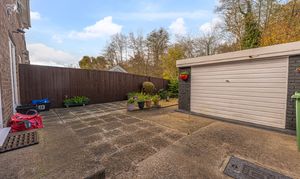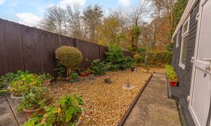 Stepping outside we arrive at the rear garden, which offers a large paved patio area is ideal for outdoor dining or entertaining, while the fully fenced perimeter ensures privacy and security. Beyond the patio we can find a low maintenance pebble stone garden which is adorned with a variety of potted plants, raised planting beds, and decorative planters to add character and greenery to this tranquil outdoor retreat. The garden is also home to the detached garage for useful storage and parking opportunity, while further off-road parking is available by the large driveway to the side of the house.
