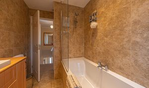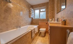 To the first floor there are three bedrooms, two of which are double while the third is a comfortable single, which could also be great for a home office, walk in wardrobe or nursery. All three of the bedrooms further benefit from fitted storage wardrobes for added convenience, while the sleek bathroom from the hallway is equipped with a bath suite and overhead shower.