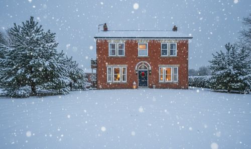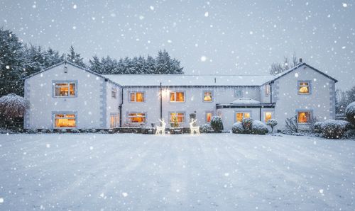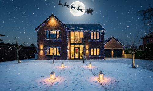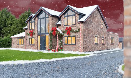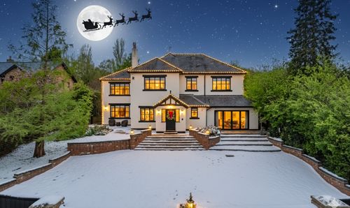 Park up in the garage, accessed via electric up-and-over doors, where there is also an EVC point. Up-and-down lighting to the front and rear casts a warm, inviting glow across the home as night falls, celebrating the unique architectural design. Pointed pitched roofs contrast with the square, contemporary features within. Whilst bold, angular lines mix with the timeless elegance of Edwardian stone pillars and brickwork.