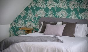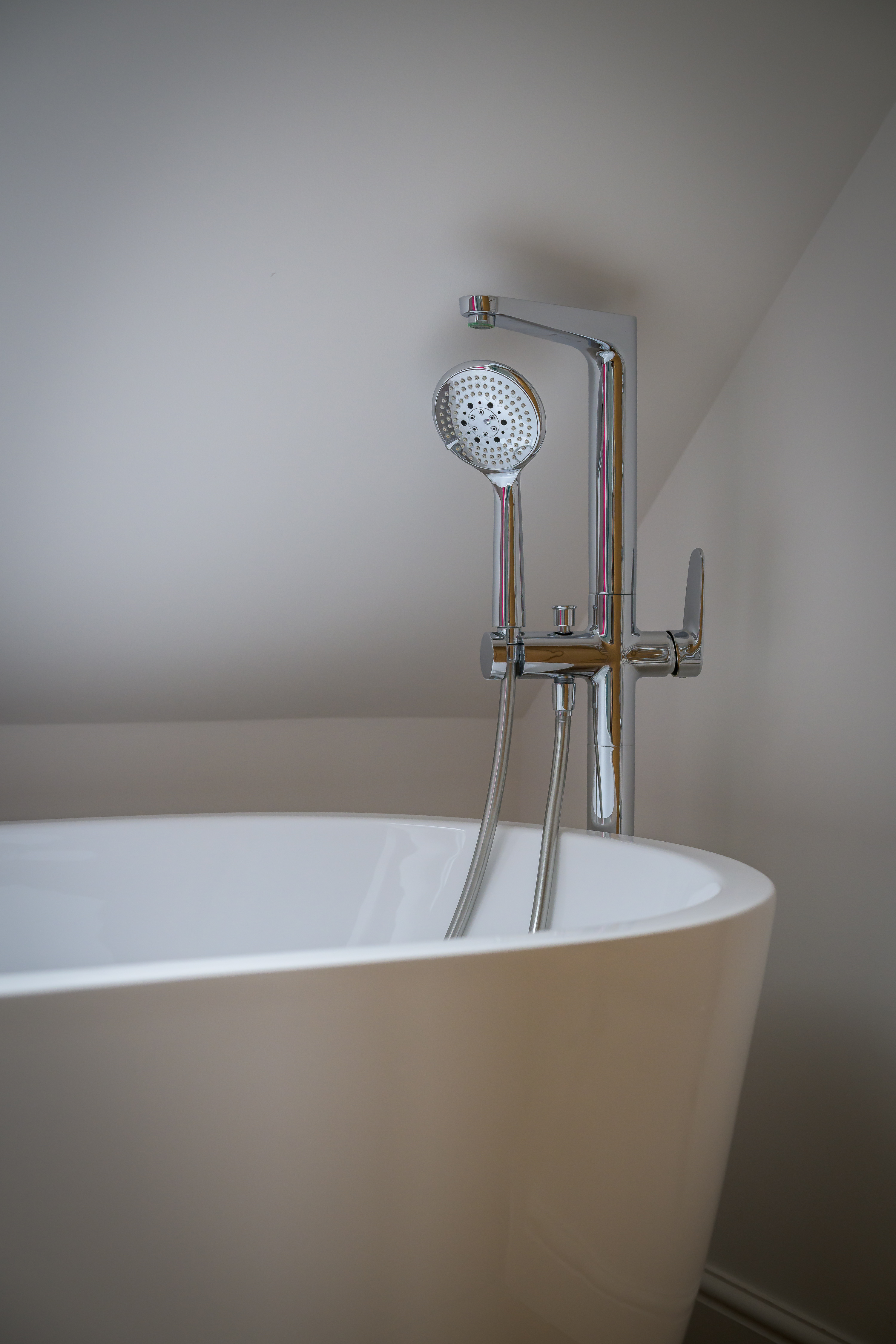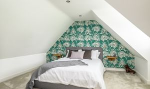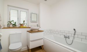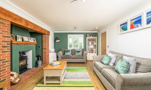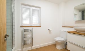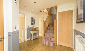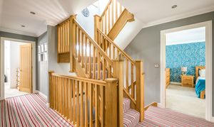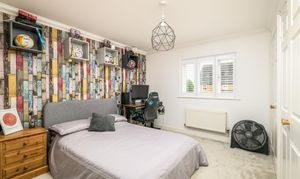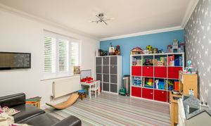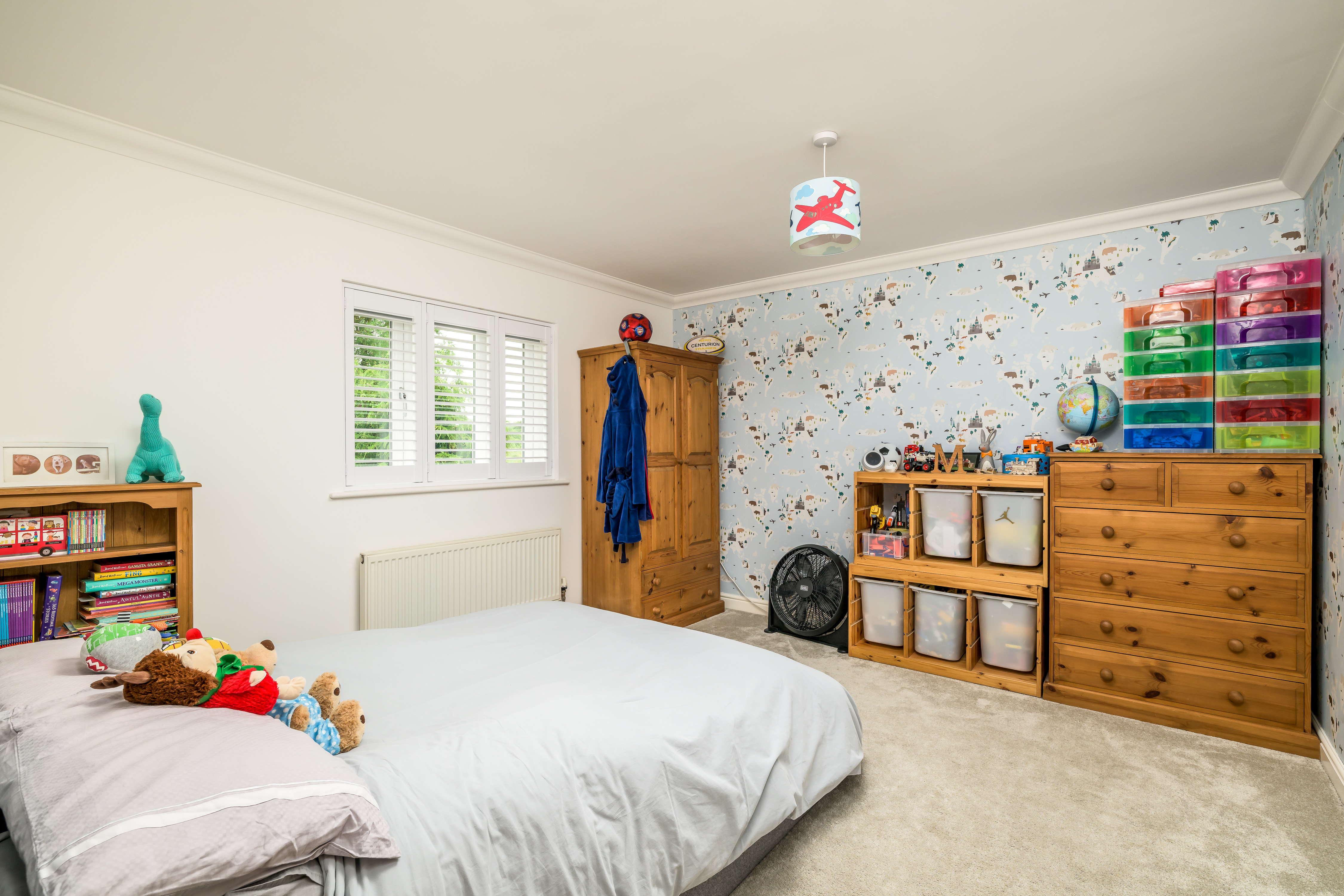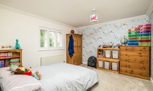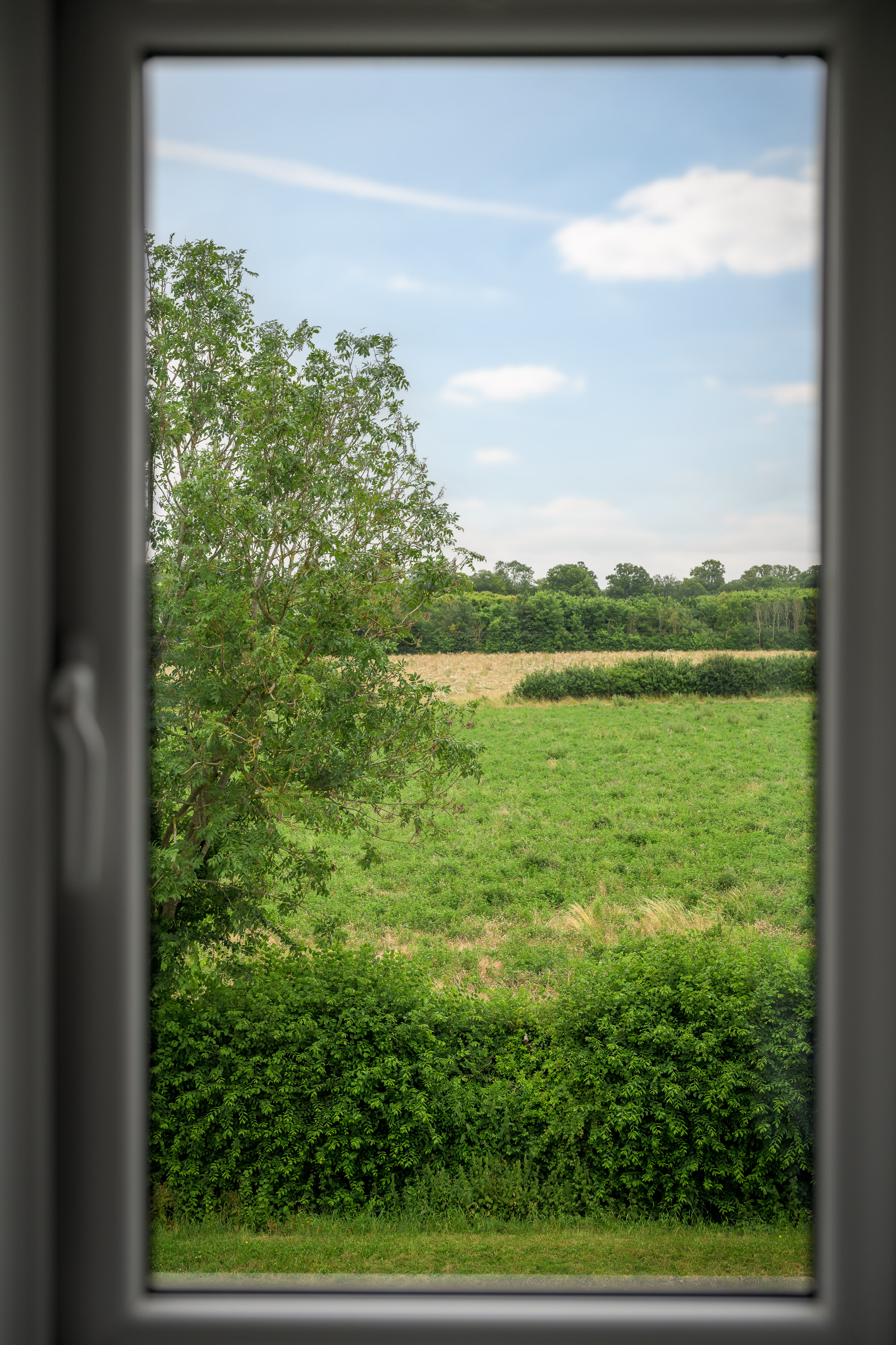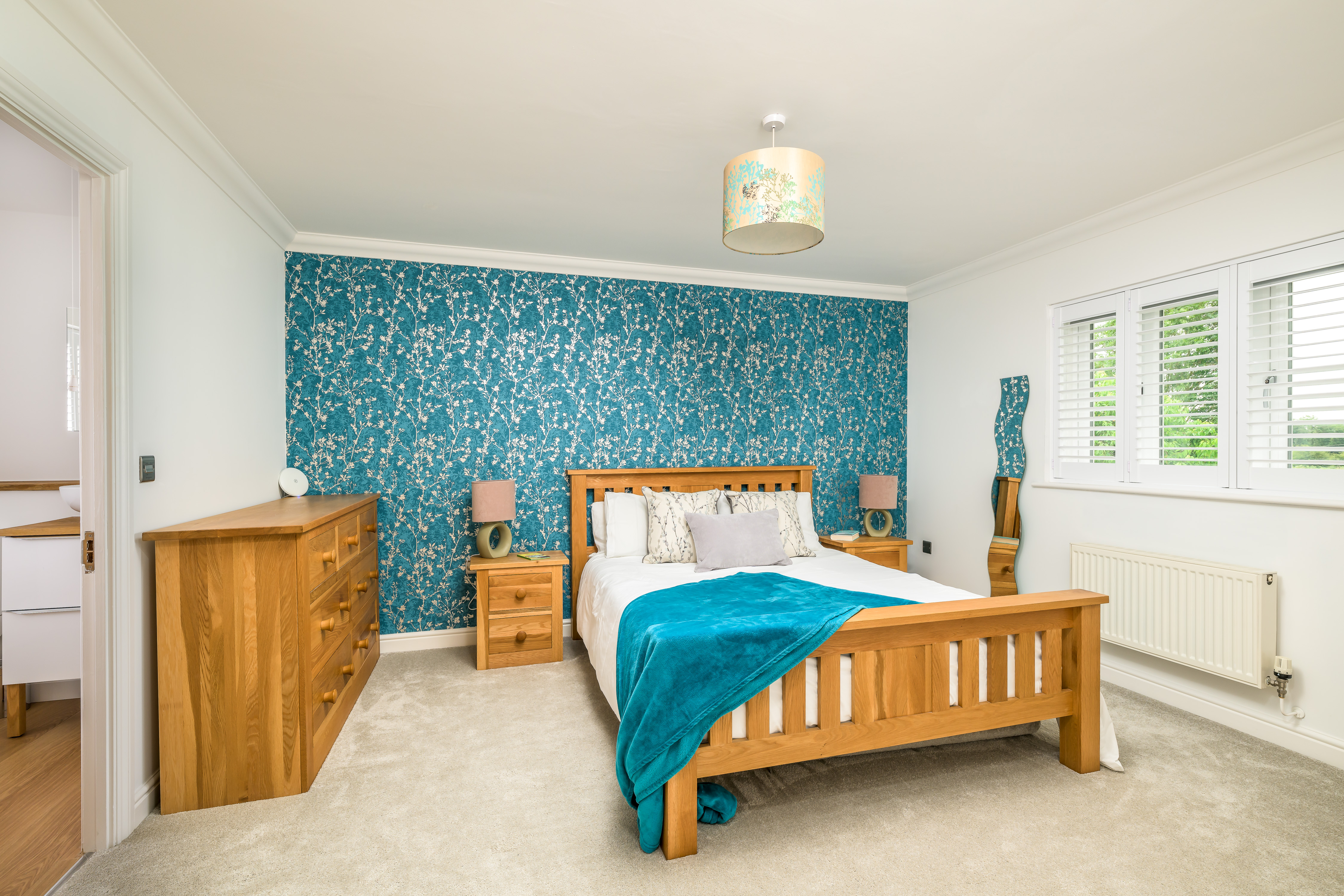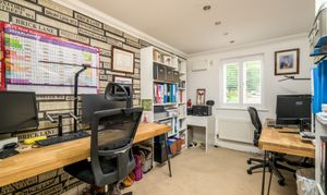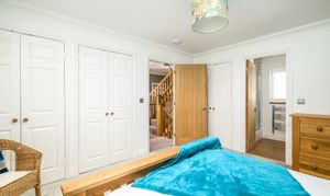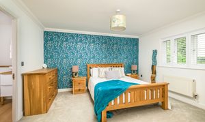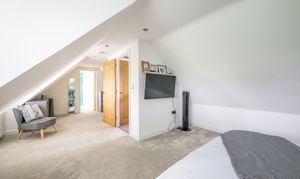 To the first floor, the family bathroom and four of five bedrooms are set around the landing, while the primary suite is private to the top floor. Windows to the front bedrooms overlook fields for a calming scene to wake up to. All bedrooms are large doubles, the primary particularly so, two have built-in wardrobes, and three benefit from an en suite. The primary en suite has an oversized shower and a freestanding bath, for both quick morning rinses and relaxing evening soaks.