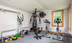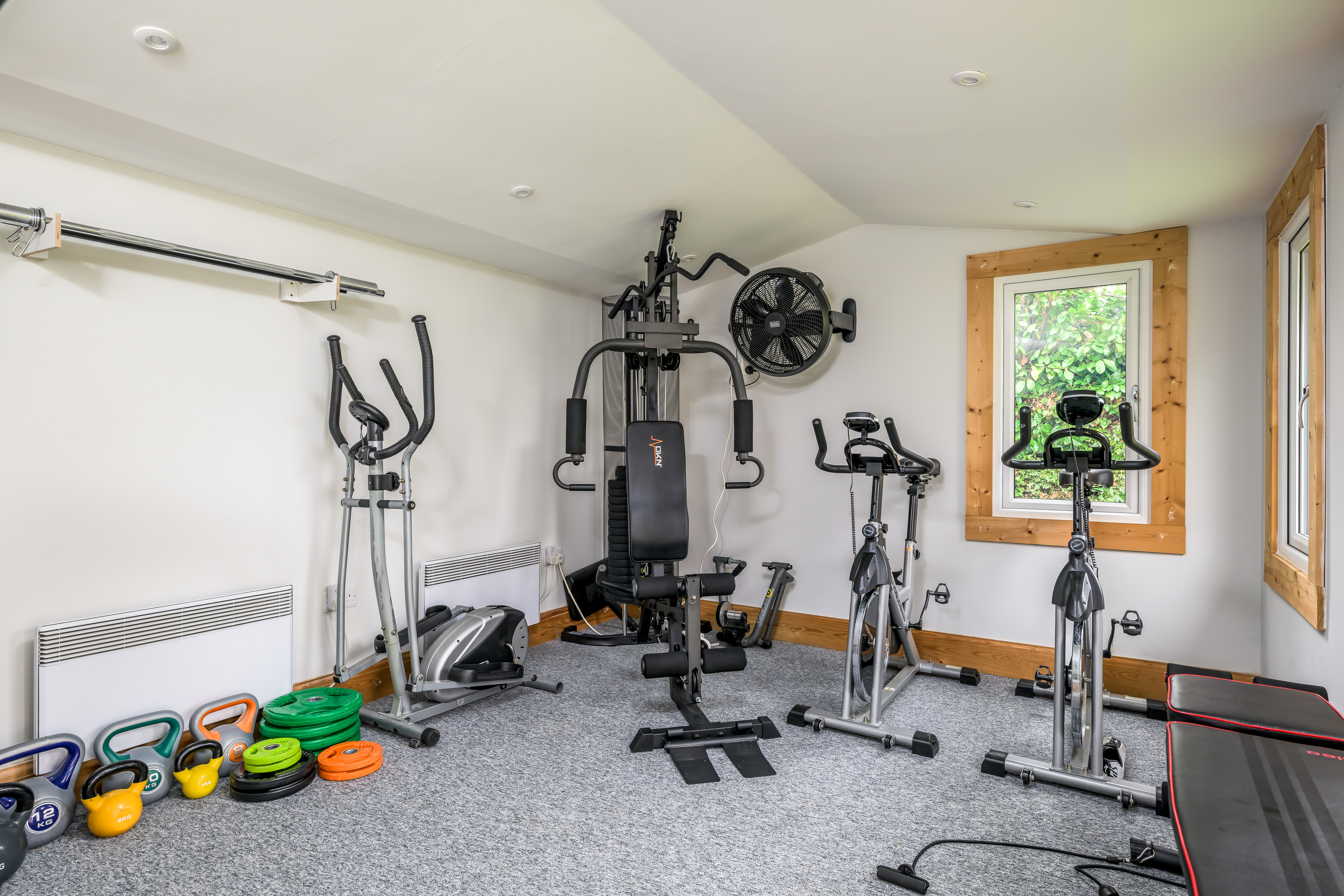 The rear garden is a great size for both chilling out at the weekend, and for children to run around after school. There’s a raised deck for dining al fresco, a barked area in the corner for a slide, and plenty of lawn for ball games. The owners have added a versatile garden room, currently used as a gym, but also offering a secluded space for another office, a studio, or simply somewhere to shelter during an English summer. It’s fully insulated, with heating and power, and windows for natural light.