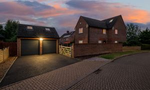 This substantial three-storey house presented in show home condition is set on a c.0.2-acre plot with wraparound gardens, a driveway and a double garage, in an exclusive village development.