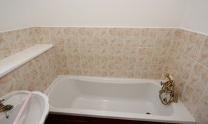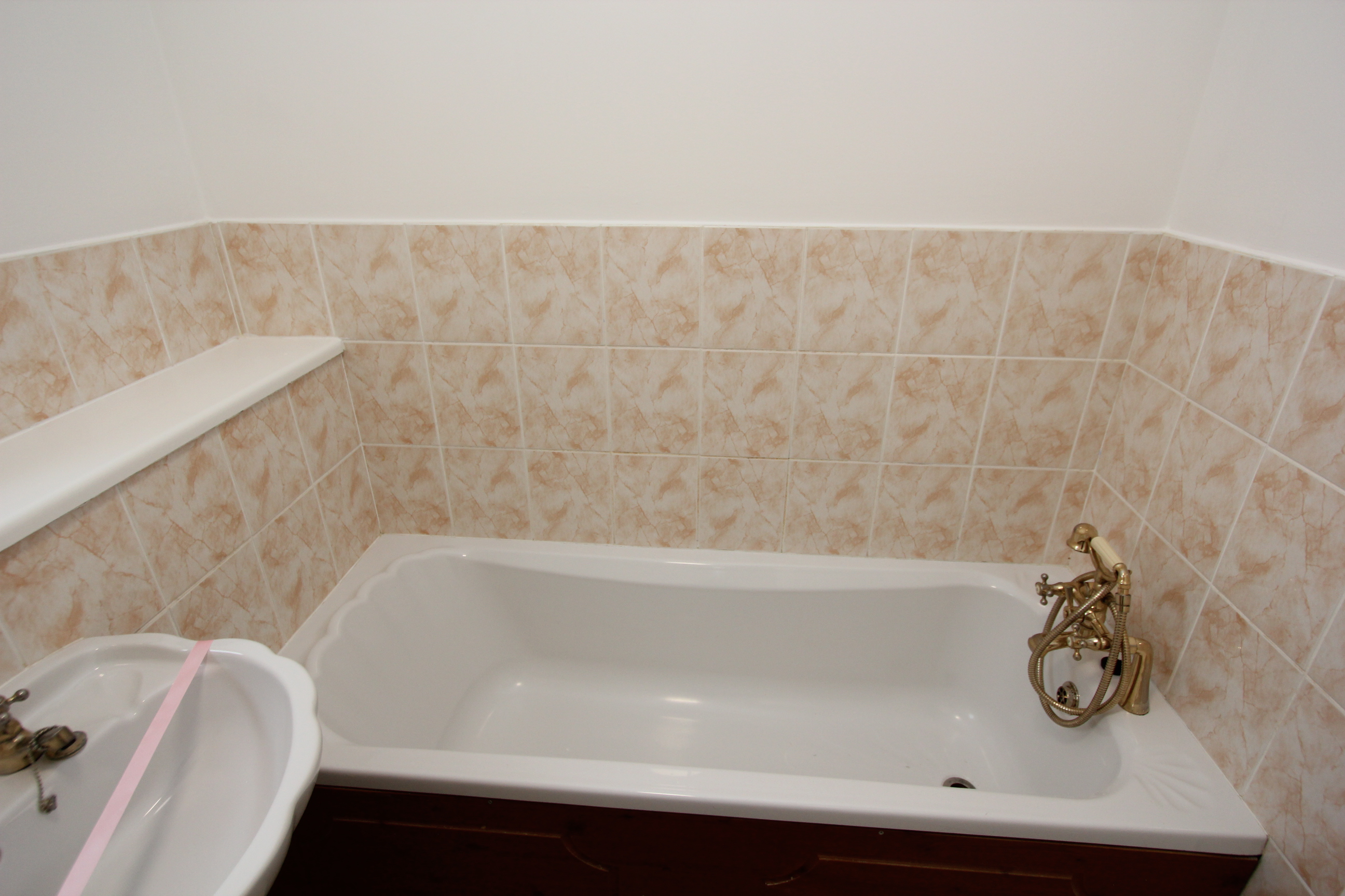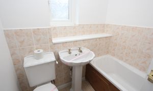 Panelled bath. Low level WC. Wash hand basin. UPVC window. Radiator.