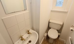 UPVC window to front. Radiator. Wash hand basin and low level WC.