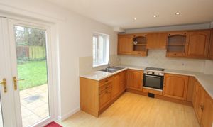 UPVC window and French doors to rear. Under stairs cupboard. Space for dining room table and chairs. Fully fitted kitchen comprising eye level units base units with drawers and works surfaces over. Inset sink with mixer tap. Electric hob and oven. Space for white goods.
