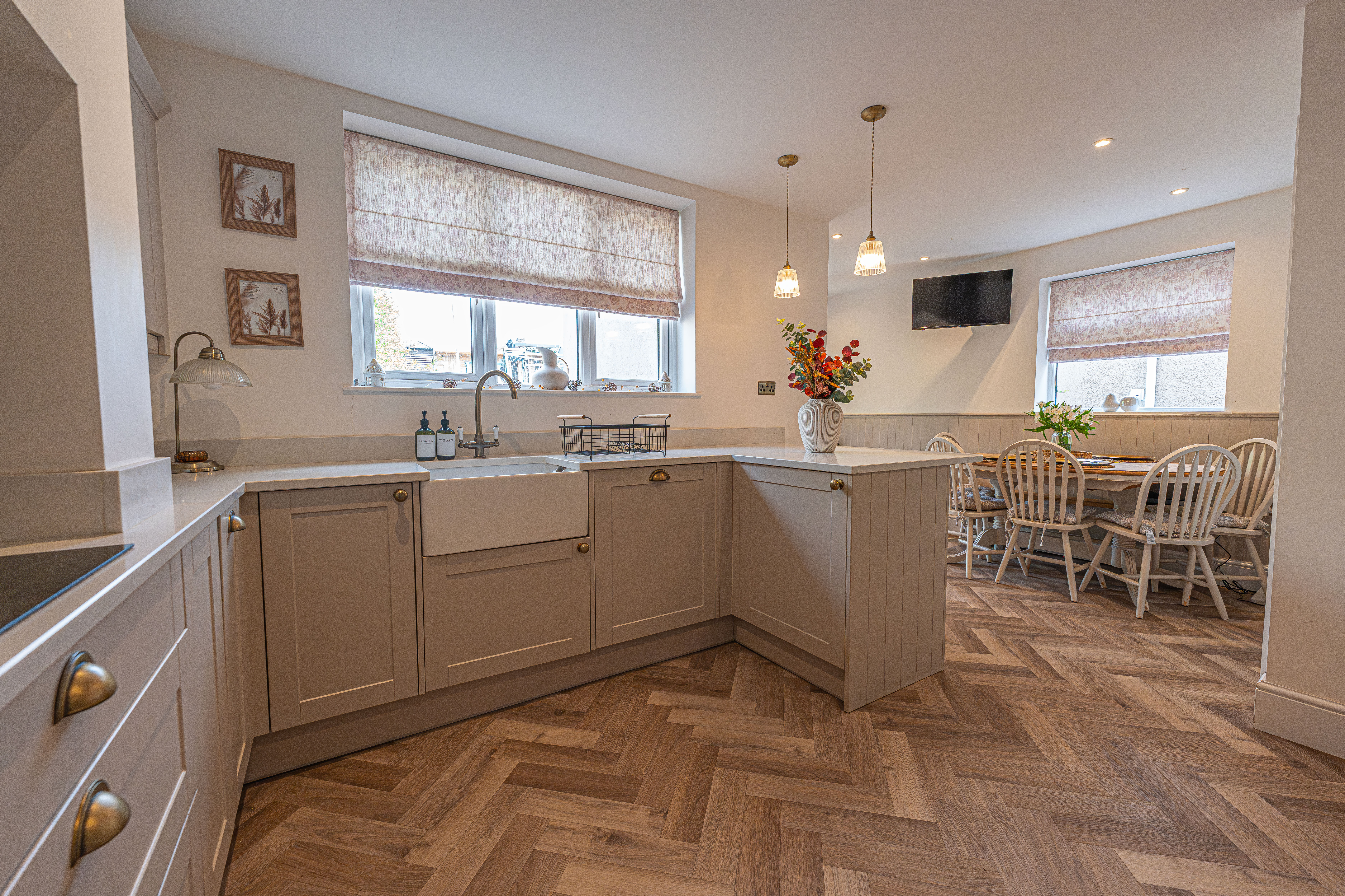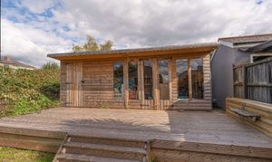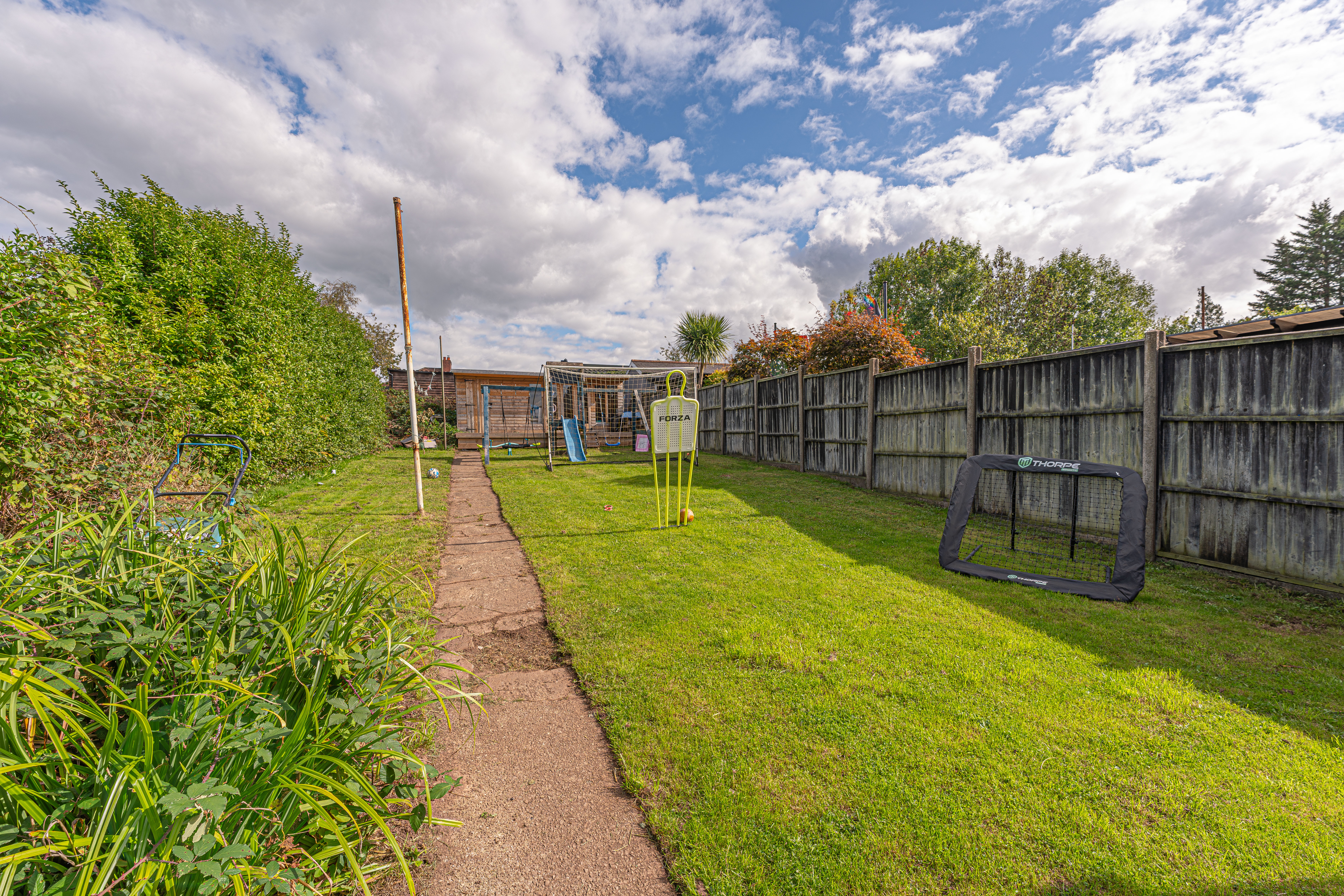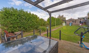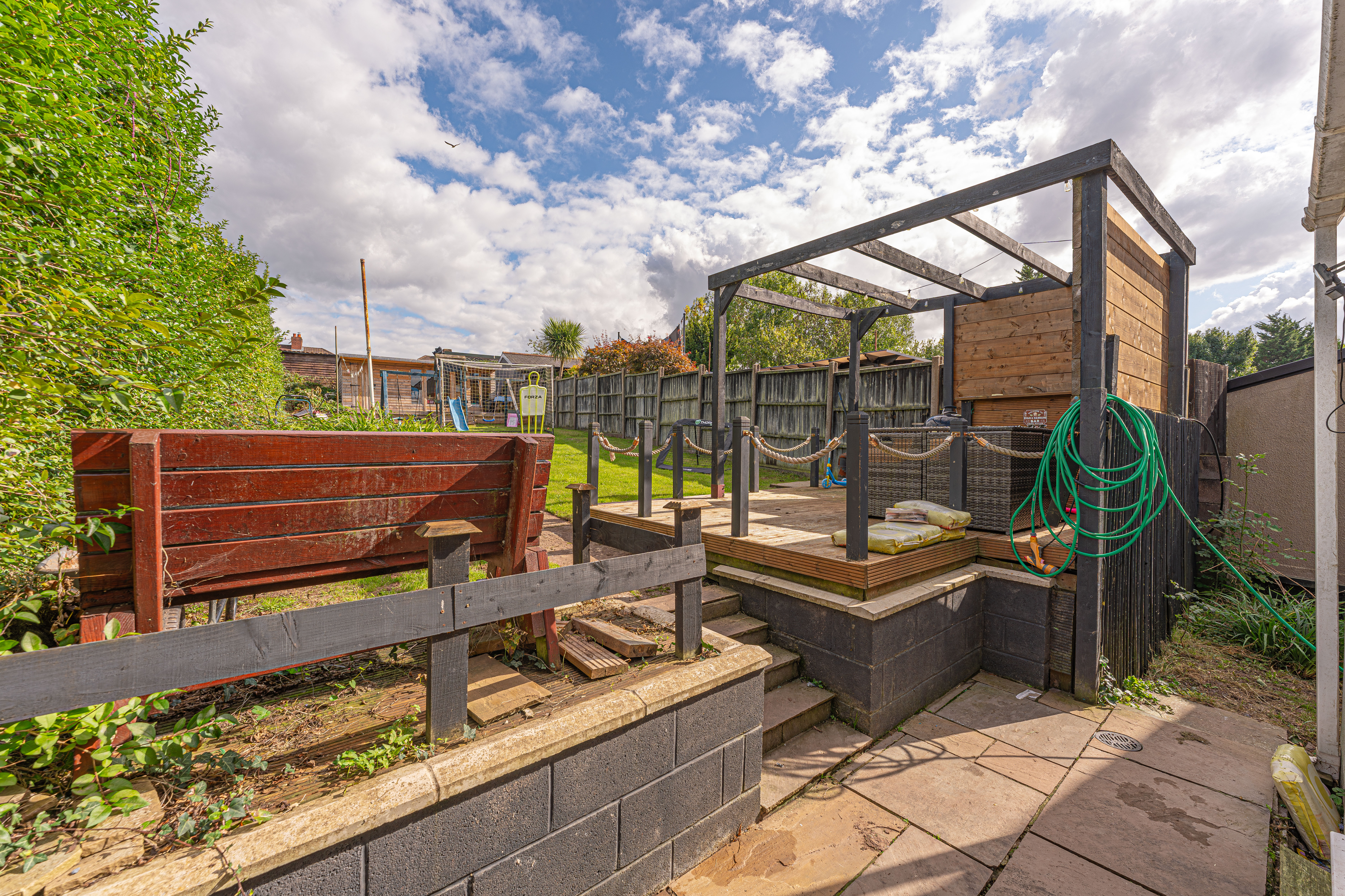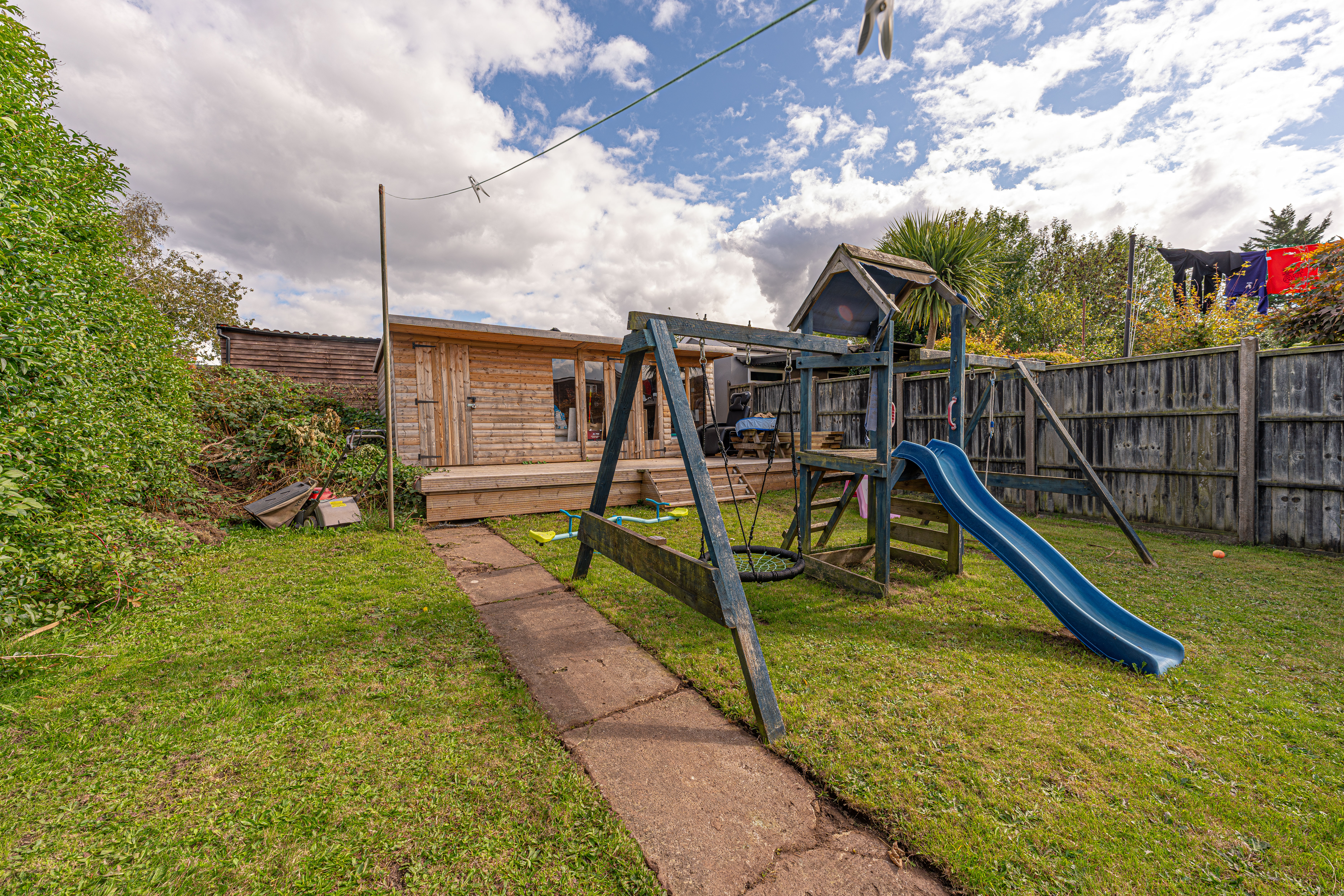 The exterior of the property is equally impressive, boasting a sizeable garden with an abundance of space for the whole family, with multiple seating areas from newly installed decking either side of the large grass lawn. From the house the charming lounge space features a sheltered pergola, perfect for entertaining guests or enjoying alfresco meals. At the far side of the property we can find another large decking area overlooking the garden, as well as the marvellous summerhouse, which has been renovated with electrics, and features a great space for a games room or home bar, in addition to a helpful storage shed.