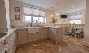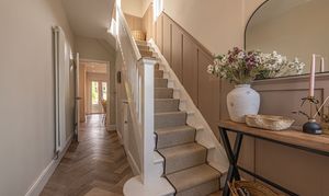 This impressive three-bedroom, semi-detached house has been newly renovated to an incredible standard throughout, and is beautifully presented to offer the perfect blend of contemporary style and family-friendly living. Step inside to discover a welcoming hallway with an understairs toilet and storage, while elegant flooring continues throughout much of the ground floor. At the front of the house we can find a great space for relaxing and entertaining in the wonderful living room, which enjoys a flood of natural light from large bay front windows. Continuing to the rear of the property we have the newly installed kitchen, which is sleek, modern and very well appointed, with a range of integrated appliances, plenty of storage fixtures and stylish lighting. In addition to a useful breakfast bar the kitchen features an open plan design to connect to the neighbouring dining area, which is lit up by French doors that open out to the garden.