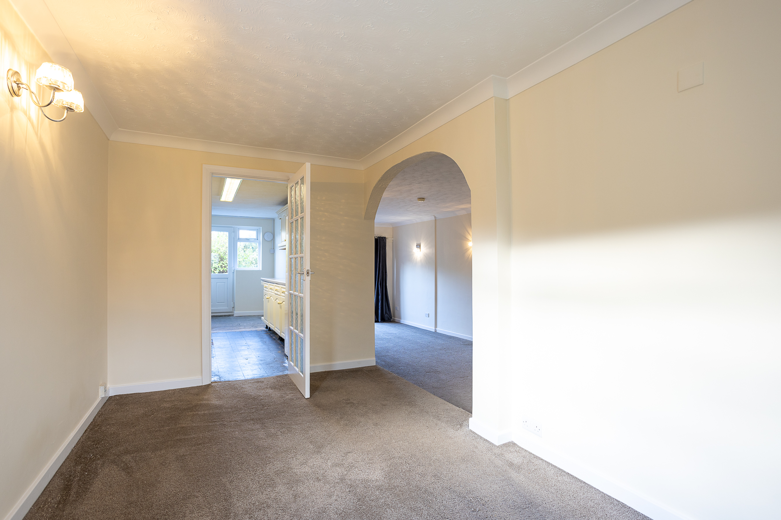 The interior boasts spacious and thoughtfully extended accommodation, featuring three generously sized double bedrooms and an additional single bedroom, making it ideal for families needing both room and versatility. The home includes a welcoming entrance porch, a convenient downstairs WC, and a large, light-filled lounge. This lounge, with its feature fireplace and double doors, not only provides a warm, inviting space but also opens up directly to the beautifully enclosed rear garden, creating a seamless indoor-outdoor flow. The fully fitted kitchen, flows into a bright dining area that’s perfect for both family meals and entertaining.