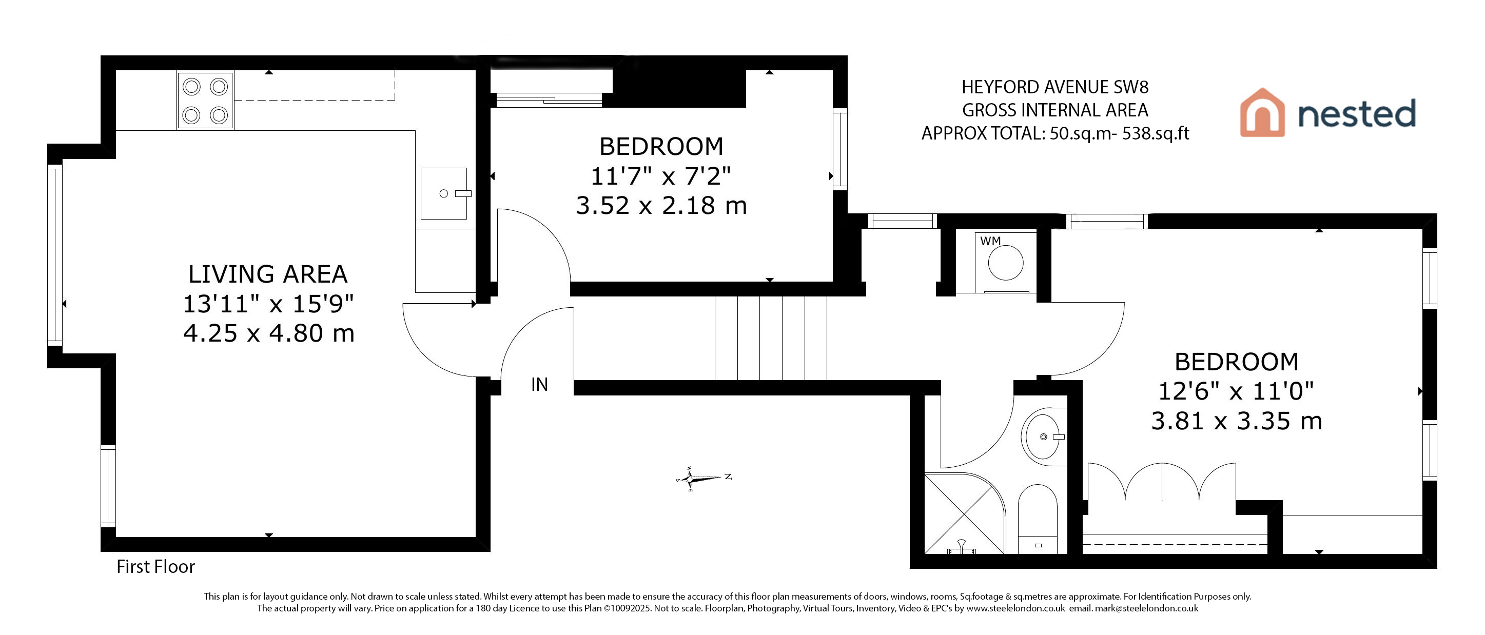 This well kept and immaculately presented 2 bed apartment of 538 square foot, on the first floor of this charming house on Heyford Avenue, SW8 is available now. Heyford Avenue is a quiet residential street in the heart of Vauxhall and the property itself features 2 double bedrooms, one with tons of built in storage, a family bathroom with shower and an open plan living/kitchen area with 3 large sash windows providing plenty of natural light.