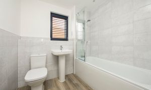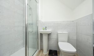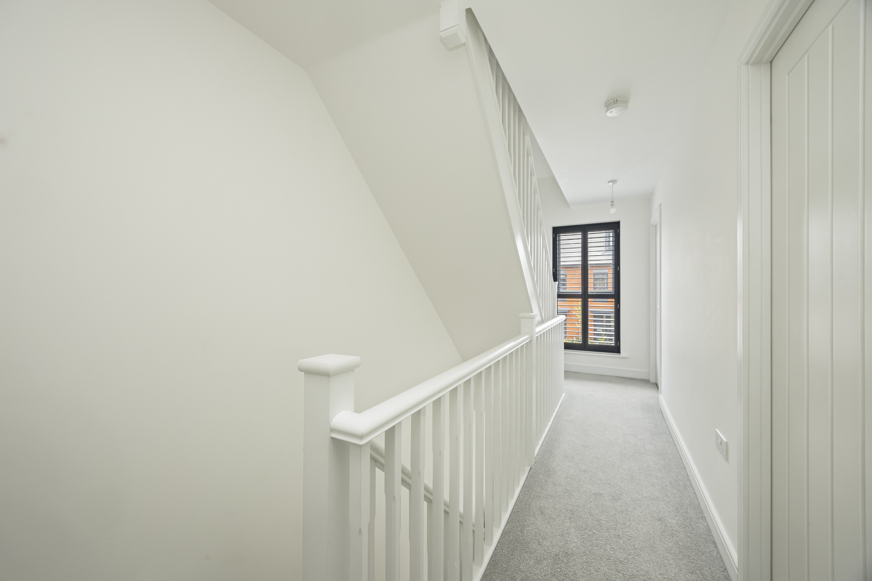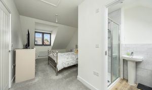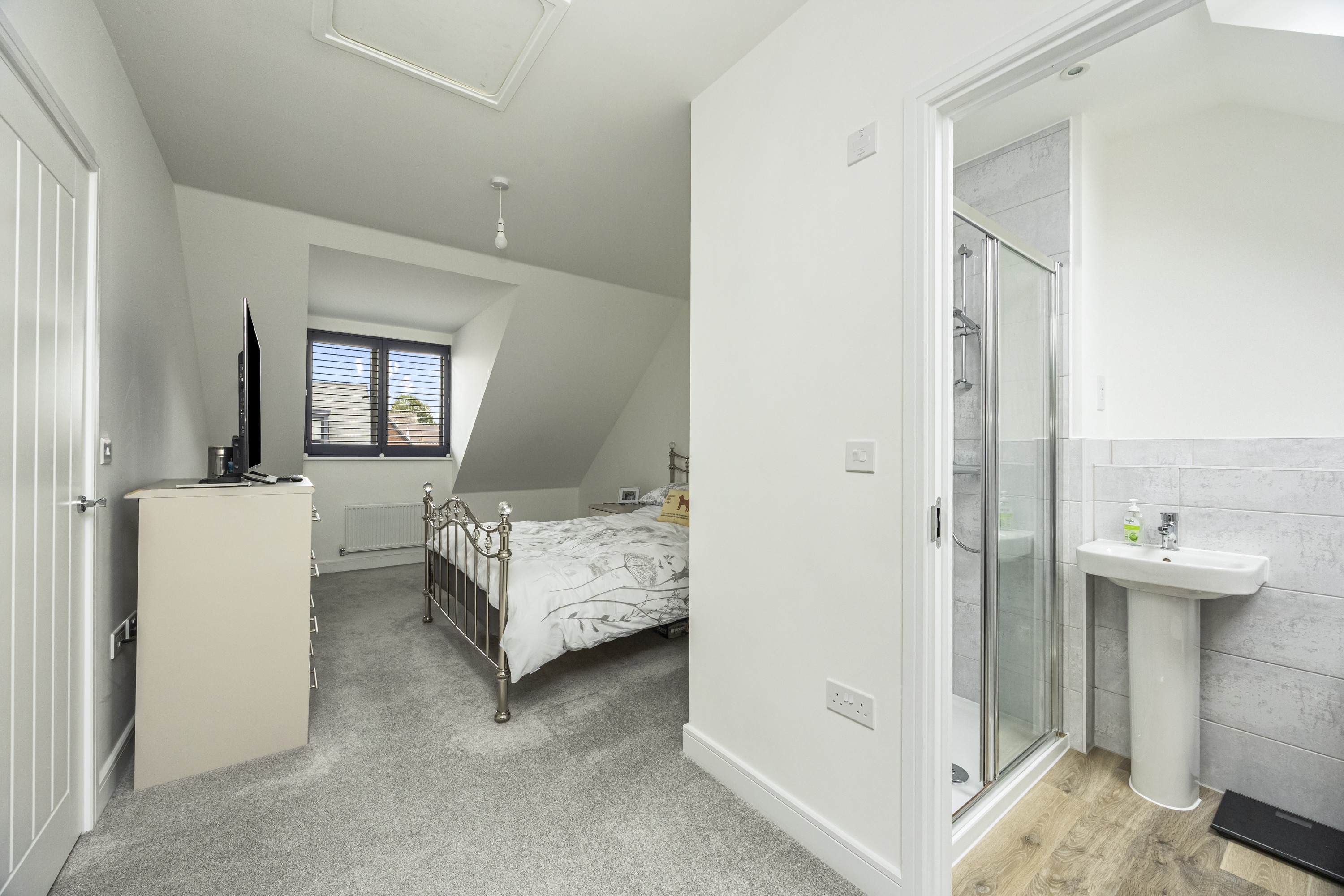 On the first floor the landing has a useful storage cupboard and two good size bedrooms as well as a family bathroom with panelled bath, overhead shower, wash hand basin and WC. On the second floor there is a large dual aspect master bedroom with eaves storage and an en suite shower room with cubicle, wash hand basin and WC.