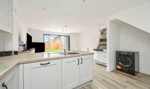 The entrance hallway has stairs rising to the first floor, a good size utility room with a WC and wash hand basin and an ‘Ideal’ combi boiler as well as eye level and base storage units and an integrated washing machine. The modern open planned fitted kitchen has a selection of wall and floor mounted units, integrated dishwasher, eye level oven and grill, fridge freezer, four ring gas hob with overhead extractor fan, the living room adjoins the kitchen with French doors onto the rear garden. New shutters are fitted throughout the property.