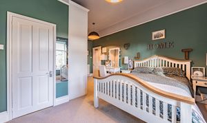 A beautiful double bedroom boasting a uPVC window to the front, which provides spectacular elevated views over Whaley Bridge. The room features excellent bespoke storage, including fitted wardrobes and drawers, ensuring a clutter-free environment. Enhanced by high ceilings that add to the feeling of space, the room includes two light fittings, two double radiators for comfort, and convenient direct access to the ensuite shower room.