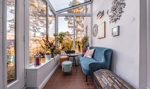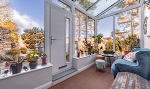 The entrance leads through a modern composite door into a superb uPVC conservatory. This space is a true highlight, featuring a clear glass roof that maximizes light and allows you to fully appreciate the stunning surrounding views. Finished with charming quarry tiled flooring, this is an idyllic spot, perfect for year-round relaxation and enjoyment of the landscape.