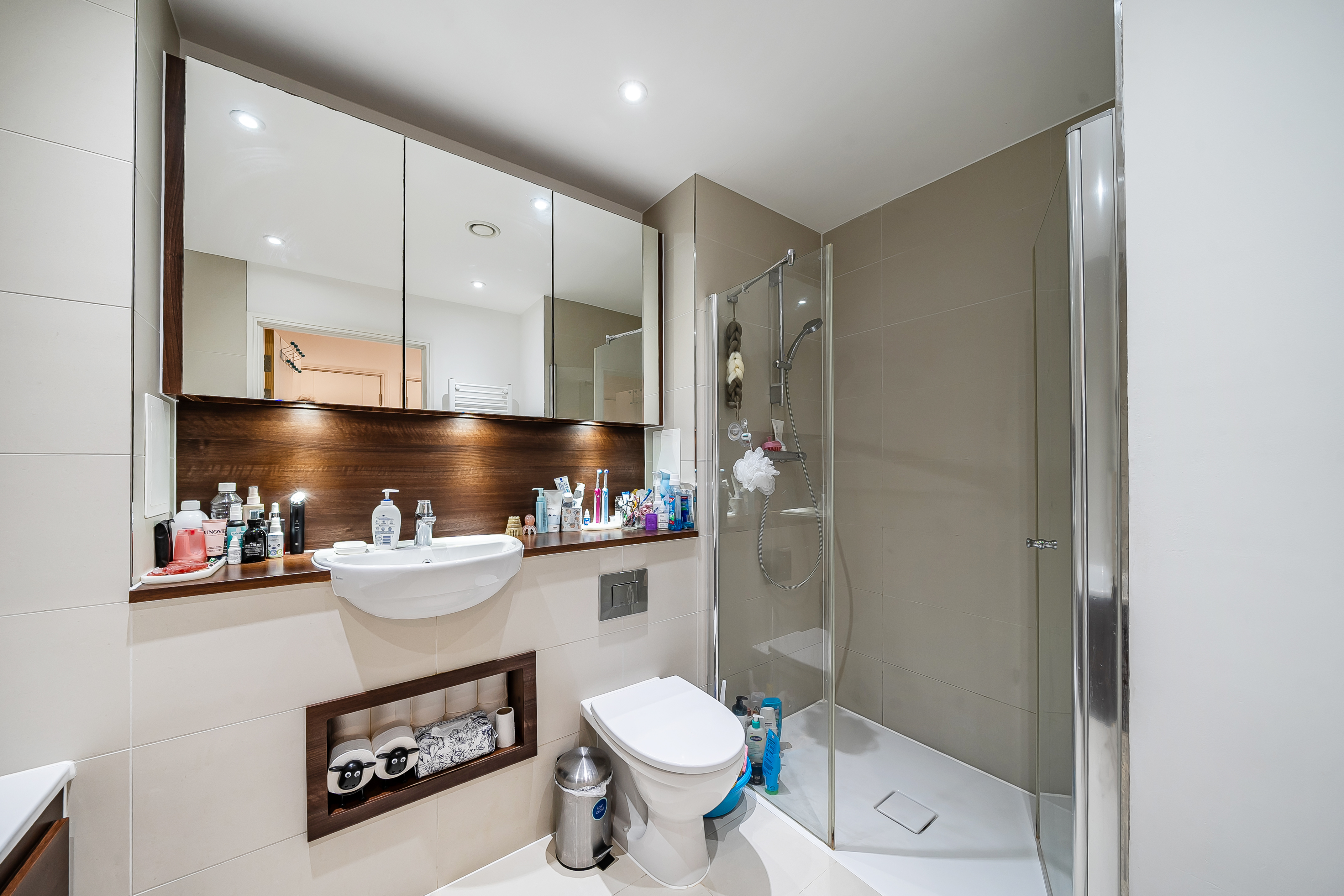 The double bedroom is generously sized, with ample room for storage, and the sleek bathroom is finished to a high standard, featuring modern fixtures and a calming aesthetic.