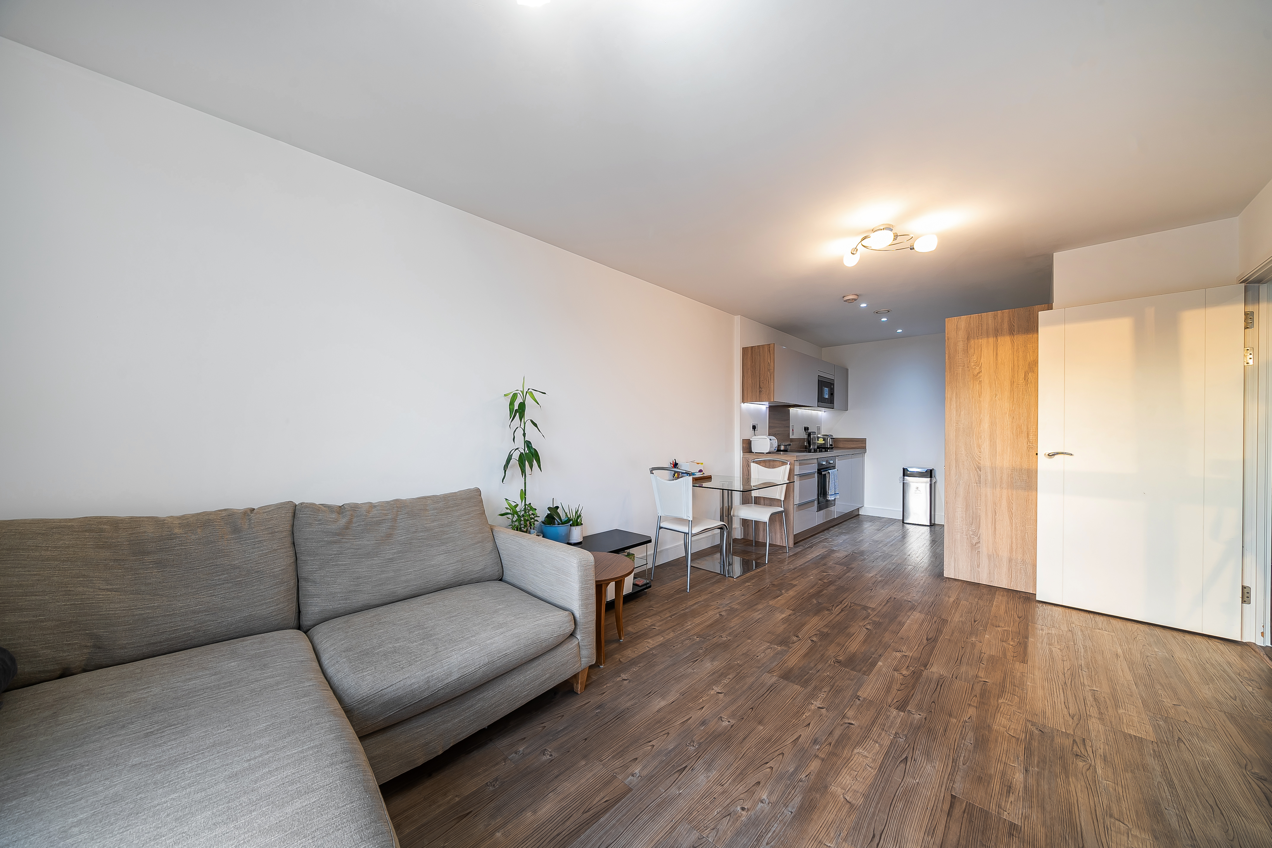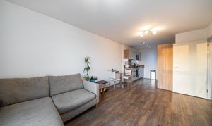 The apartment is in excellent condition throughout, with a contemporary integrated kitchen that flows seamlessly into the open-plan living area, creating a warm and inviting atmosphere ideal for relaxing or entertaining.