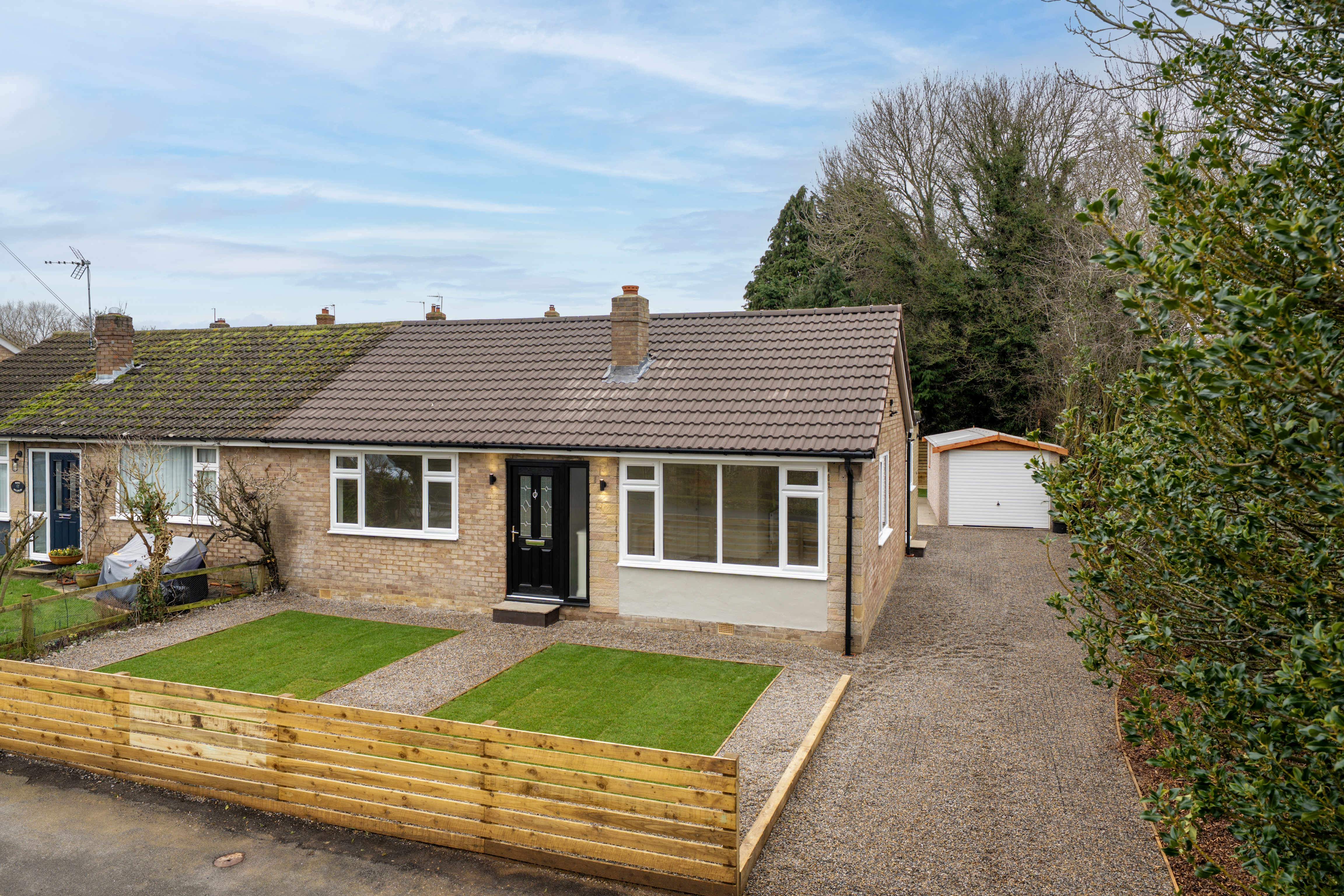 An immaculately presented, newly refurbished 3 bedroom semi-detached bungalow, set within beautifully landscaped gardens, featuring a gravelled driveway, private front and rear lawned gardens, and a detached garage. The property occupies a peaceful corner cul de sac position in the highly sought-after village of Staveley, close to Knaresborough and with convenient access to the A1.
