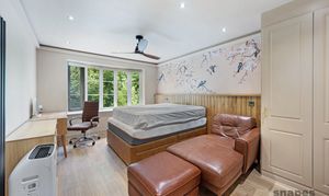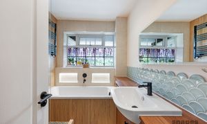 In addition to the above, you have 3 bedrooms in total off the good size entrance hall, which also has built in storage. One of the bedrooms (No.3 as shown on the floor plan) could easily become a study / at-home-office, or hobby room, and we have even seen this space converted in a second bathroom or utility room. Then you have two further bedrooms which boast impressive measurements and both enjoy a similar leafy view via the windows. The main bathroom is sublime, with a high end suite fitted, ensuring both practicality and comfort, amenities fitted and design (See photos). Finally you have the separate WC, which enables one to use the bathroom/shower room and a guest to use the WC/Toilet without tying up both rooms.