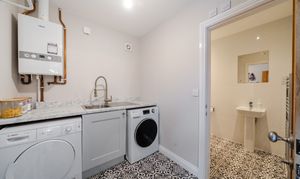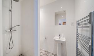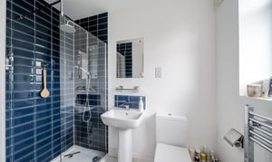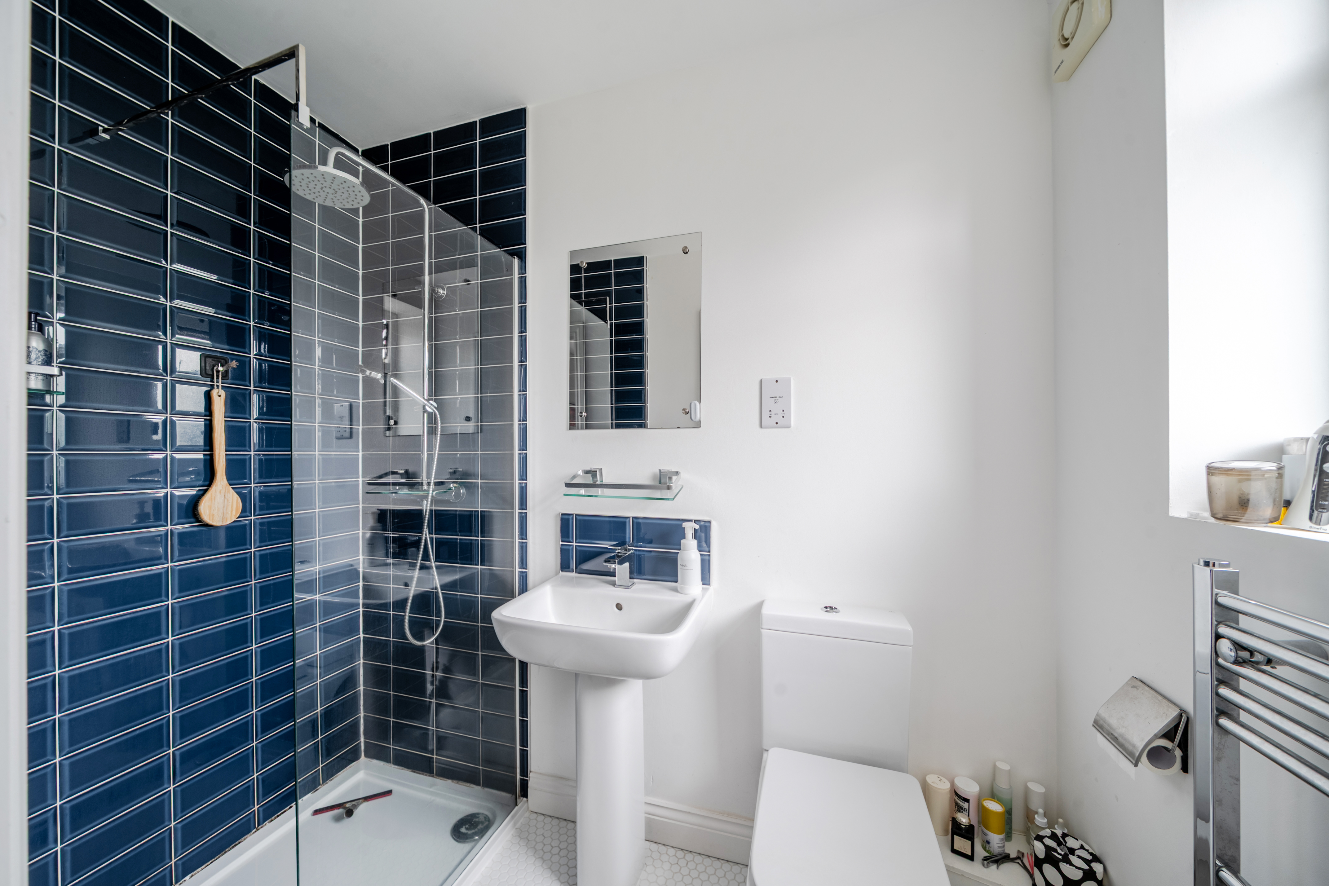 To the first floor, a landing provides access on to an excellent principal bedroom with the advantage of a walk-in wardrobe and en-suite shower room. There are two further double bedrooms, a third single bedroom/nursery and a stylish, fully tiled house bathroom with a separate shower enclosure.