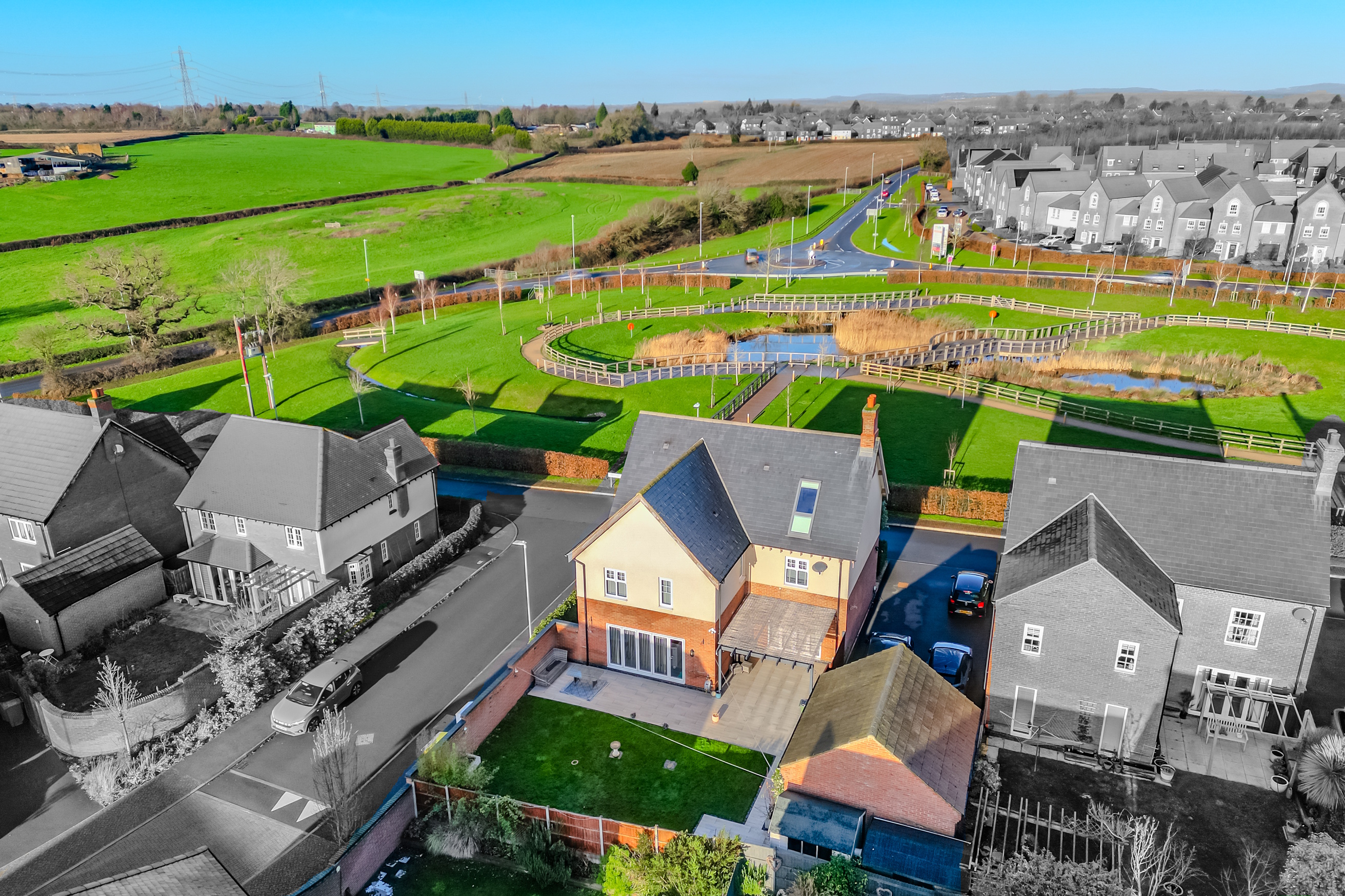 Hampsons are delighted to present to the market with NO UPWARD CHAIN this most attractive and substantial executive detached home, constructed to an exacting specificiation by Messrs. Davidsons Homes and having been further improved over recent years. The property occupies arguably one of the most sought after plots on the development, overlooking open parkland and a lake and being located on the edge of the development extremely close to open countryside. The property offers a wealth of living accommodation approaching 2350ft² and an early inspection is advised to appreciate the size and quality of the accommodation on offer.