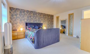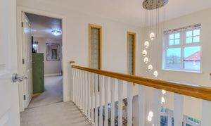 To the first floor there is a large landing, off which is the stunning master bedroom which is accessed via a separate galleried landing. The bedroom is of superb proportions and has a run of fitted wardrobes and an en-suite shower room with his and hers basins. Also on the first floor are three further bedrooms, all generous double berths and there is a well appointed family bathroom comprising a four piece suite of panelled bath with shower over, double shower, low flush WC and a pedestal wash hand basin.