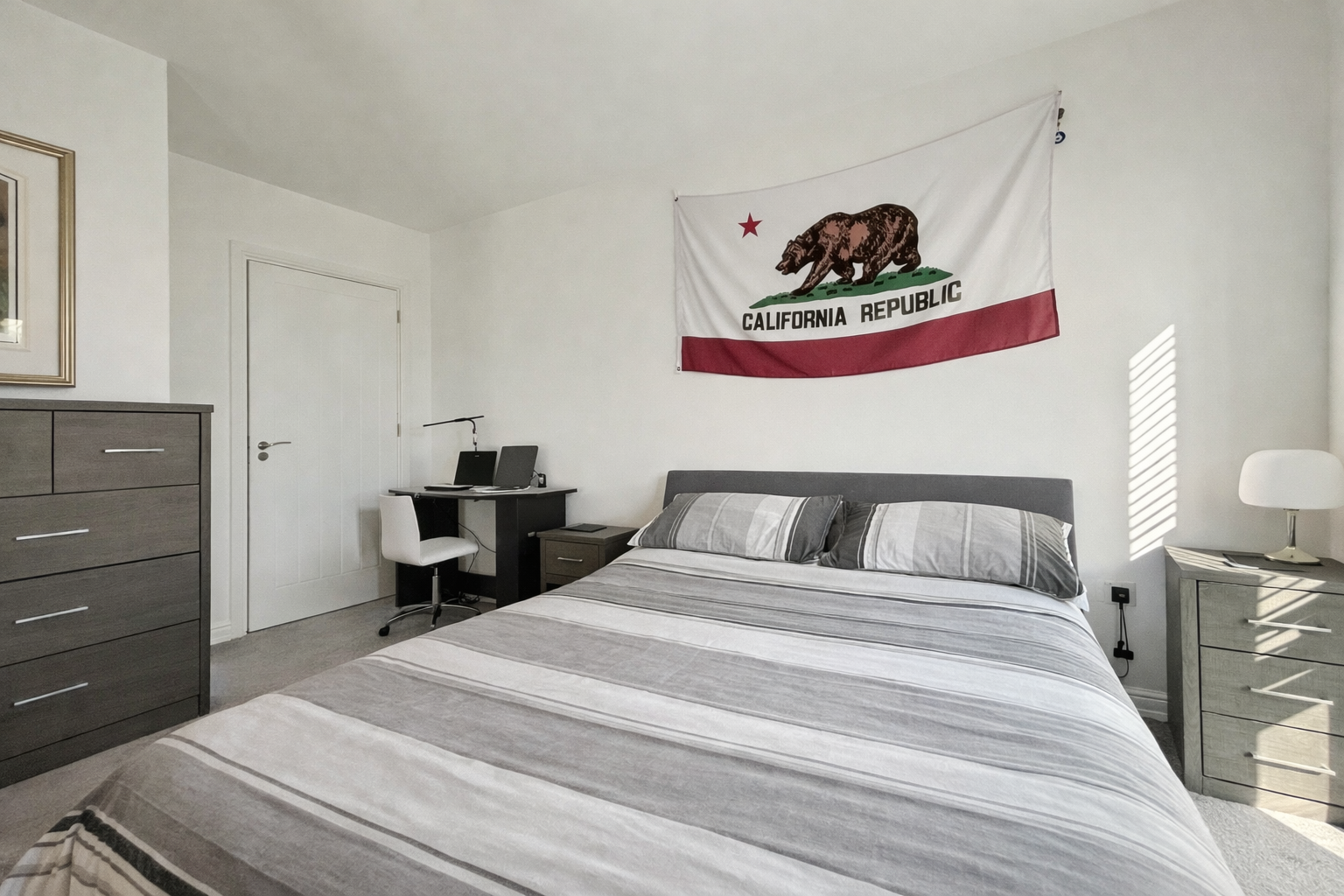 Both bedrooms are generously proportioned, offering flexibility for a growing family, home office or guest accommodation. The master bedroom boasts a luxurious en-suite shower room, providing a private sanctuary to unwind at the end of a busy day, while the second bedroom is equally impressive in size and comfort. A contemporary family bathroom, finished with sleek fixtures and tasteful tiling, adds further appeal and convenience.